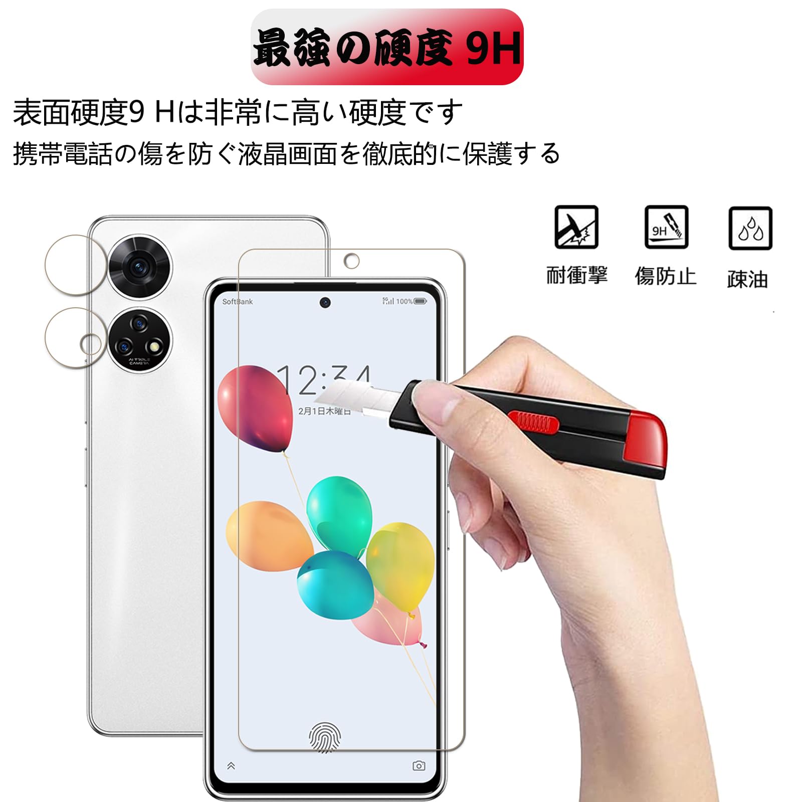 【2+2枚セット】ZTE あんしんファミリースマホ 用のガラスフィルム(2枚)+カメラフィルム(2枚)SoftBank A303ZT すみっコぐらしスマホ (SoftBank) 用の フイルム 強化液晶保護フィルム ワンタッチ貼付け/気泡ゼロ/ケースと干渉せず/硬度9H/飛散防止/指紋防止
