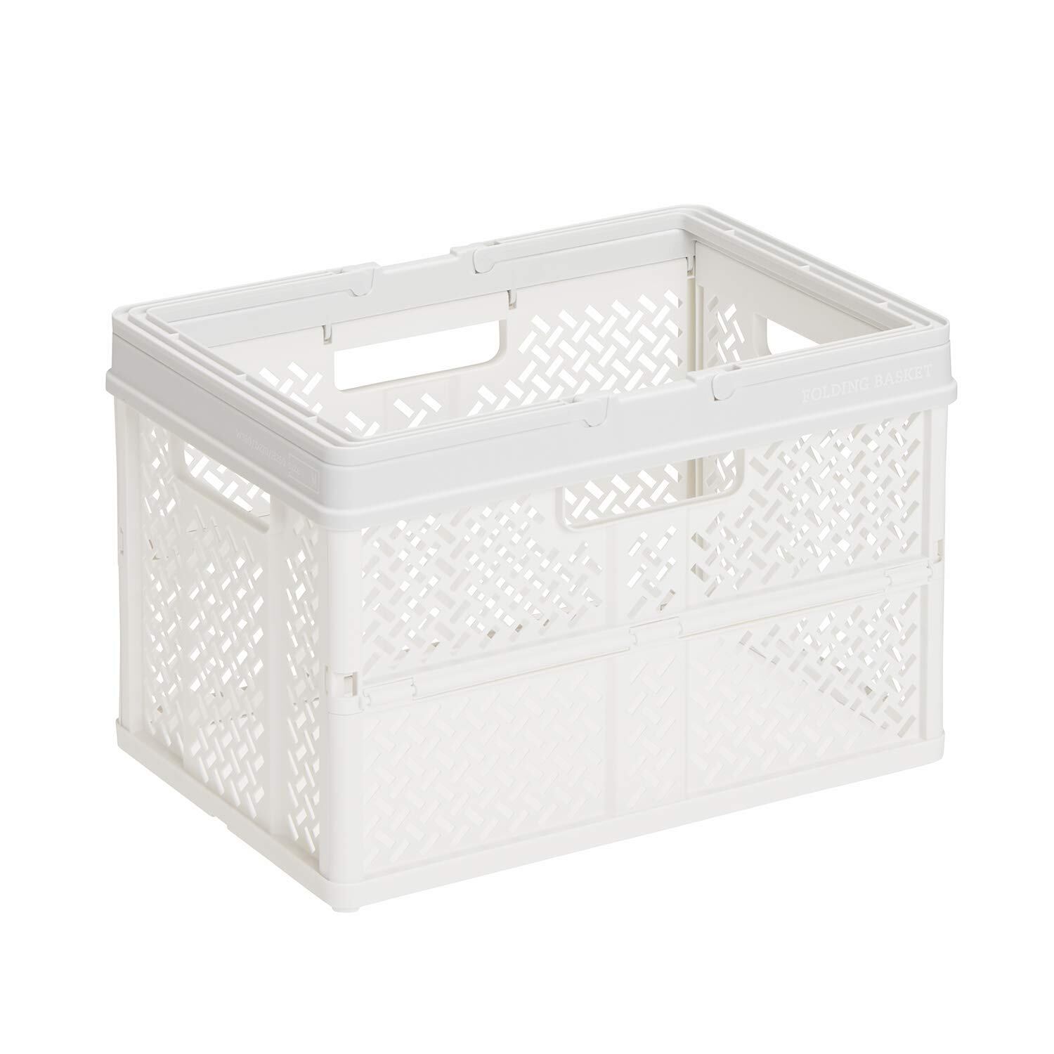 天馬(Tenma) 折りたたんでコンパクトになる持ち手付きの収納ボックス 完成品 折りたたみバスケット Mサイズ お部屋に馴染むデザインの折り畳みコンテナ オリコン カゴ A4ファイルがぴったりのバスケット プラスチック 【組立不要】 【色 スモーキーホワイト】 【サイズ M】 【幅39×奥行27×高さ26cm】【折りたたみ時 高さ5.5cm】