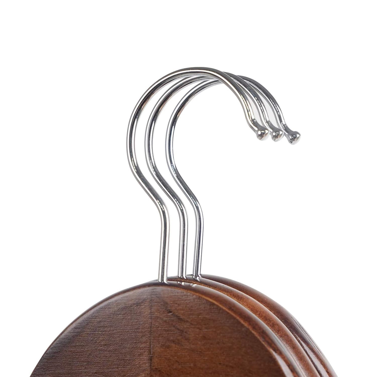 YAMLGHT 木製ハンガー 天然メープル材 スーツ シャツ ジャケット コート用 薄型滑り止め溝 変形防止ズボンレール付き 360度回転 茶褐色 10本セット