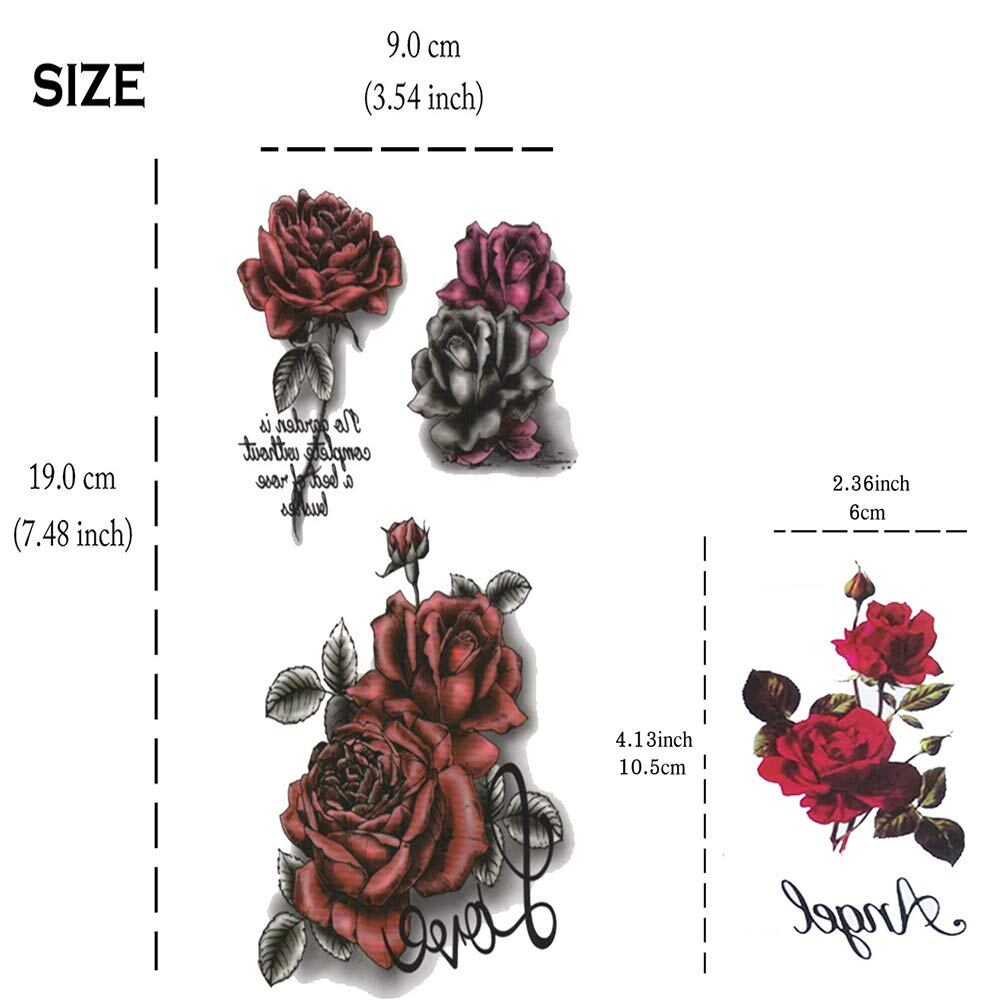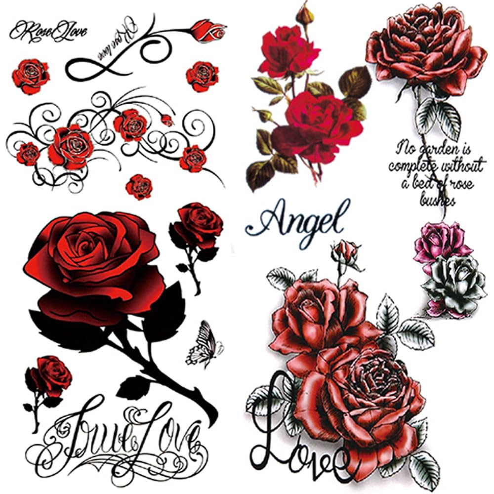 Yesallwas タトゥーシール トライバル 薔薇 赤 黒 8枚セット ロース Rose 長持ち タトゥーステッカー ボディーシール 刺青シール 防水 rose tattoos 9X19cm (F.8枚セット)