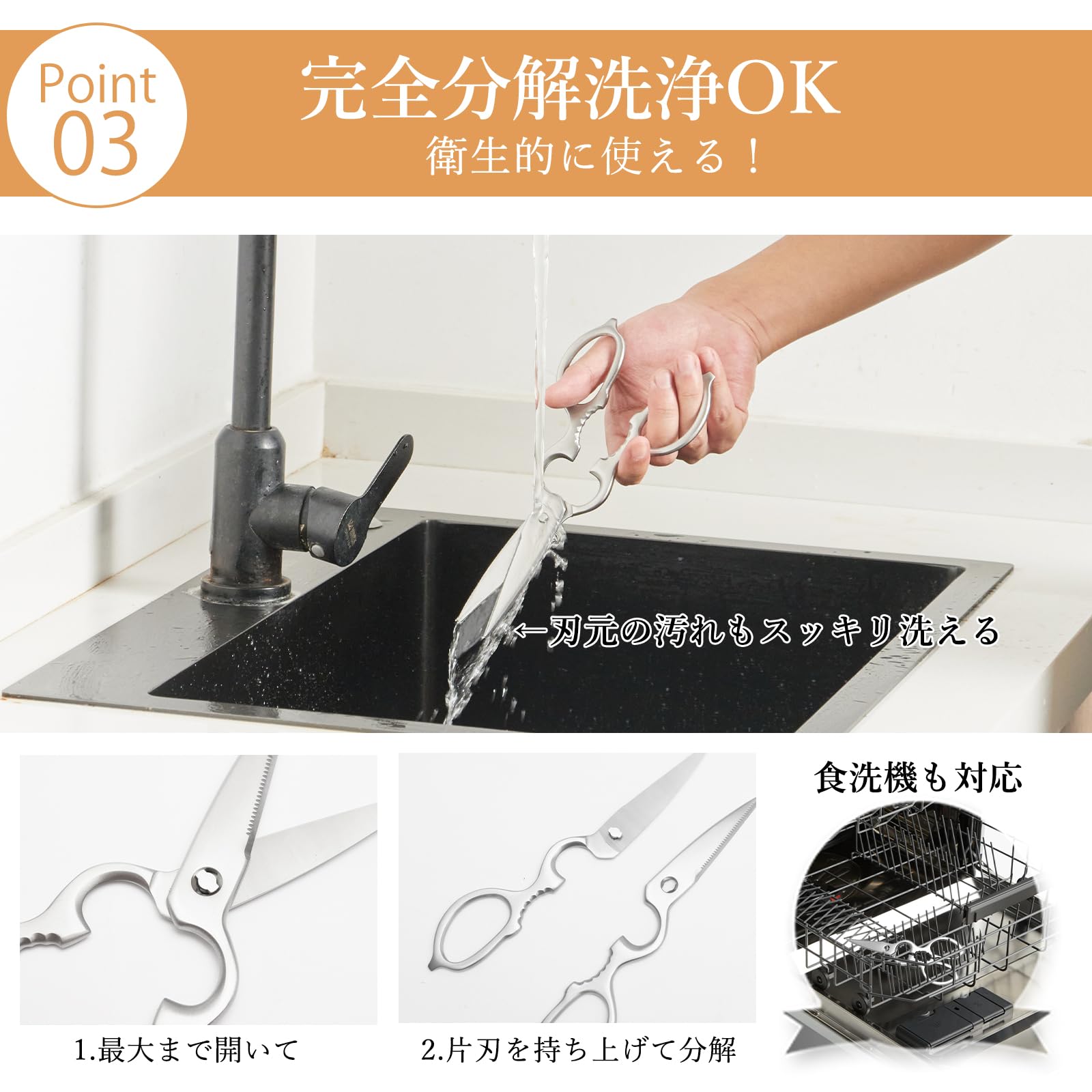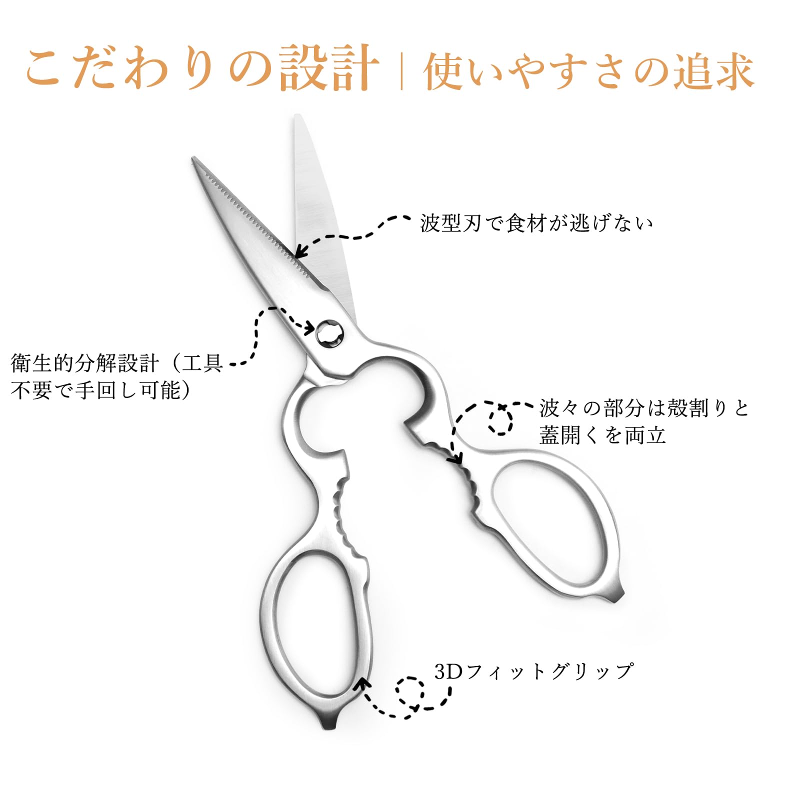 Boryenty キッチンバサミ キッチンハサミ ステンレス製 料理バサミ 焼肉ばさみ ボトルオープナー 多機能ハサミ 軽量 野菜 肉カット分解 ナッツクラッカー 食洗機対応
