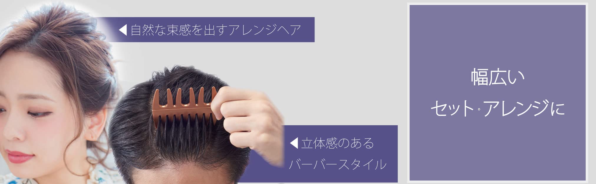 【メンズ・レディース両用】男性の場合は、オールバック、コームオーバー(七三分け)、ポンパドール(リーゼント)、ツーブロック、クロップスタイルなど、バーバー/クラシカルスタイルの仕上げ用に最適。また、女性の場合はウェーブスタイルを作るのに重宝します。