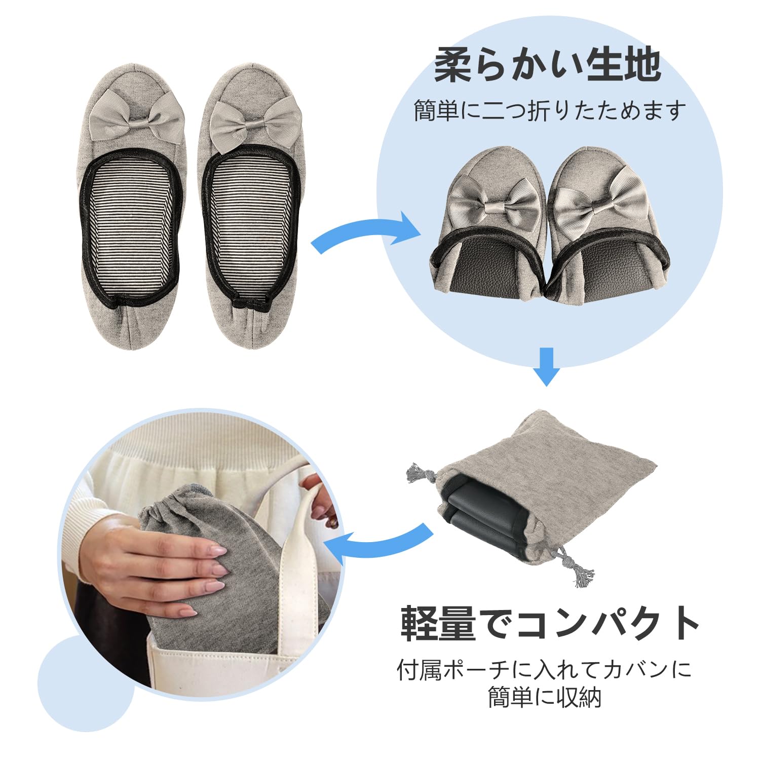 [amifun] 携帯用スリッパ レディース 23-24.5CM 折りたたみスリッパ 入学式 卒業式 洗濯可 ルームシューズ 防災 使い捨て ry旅行 コンパクト収納 専用ポーチ 蝶結び付き