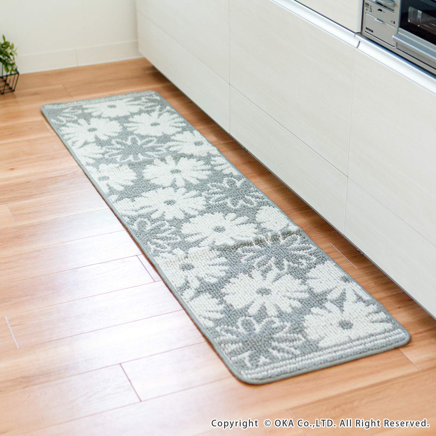 オカ(OKA) シュクレ キッチンマット 約45cm×180cm グレー(すべり止め 洗える)