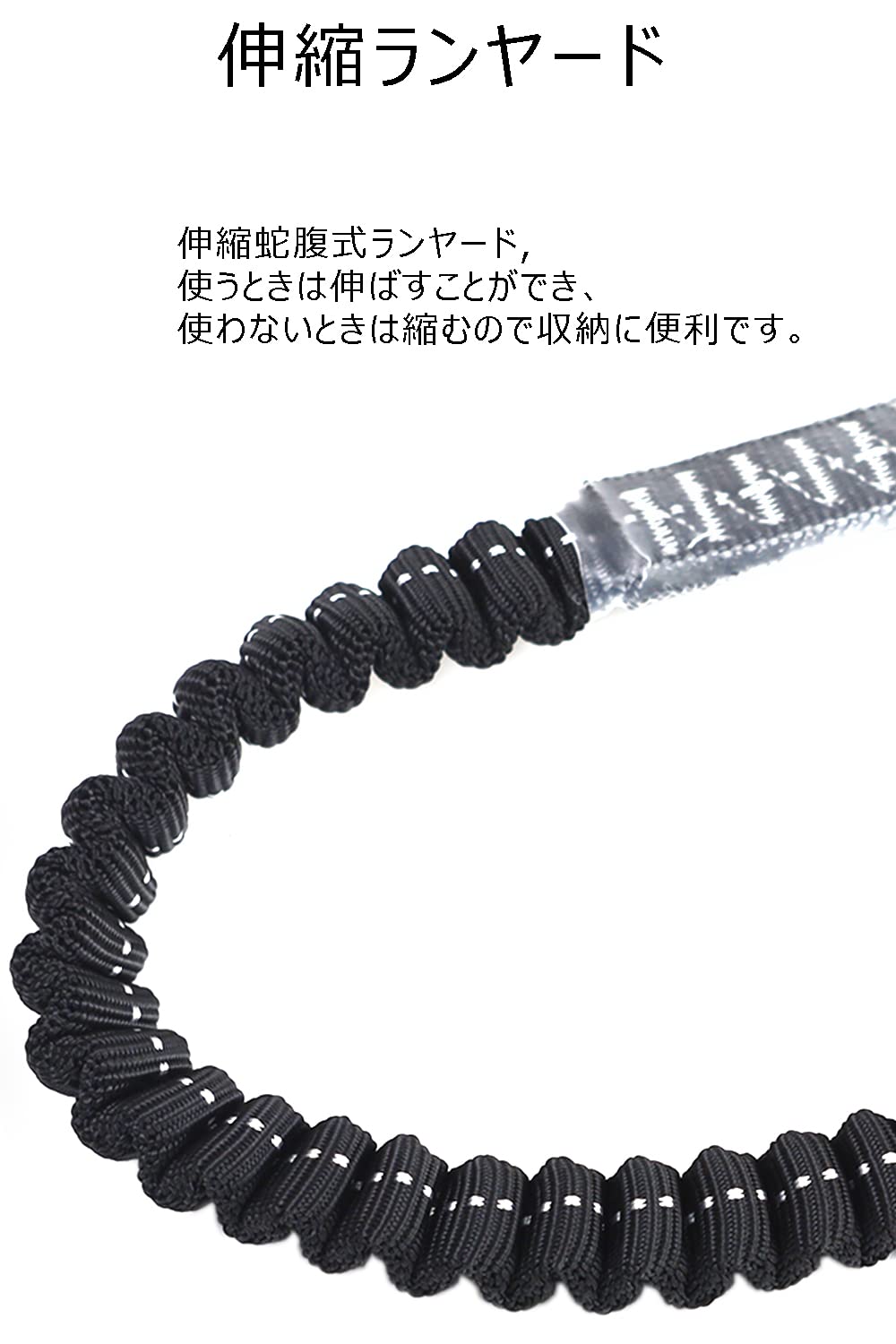 ランヤードサイズ:通常時長さ約800 mm, 伸長時長さ約1200 mm;伸縮蛇腹式ランヤード