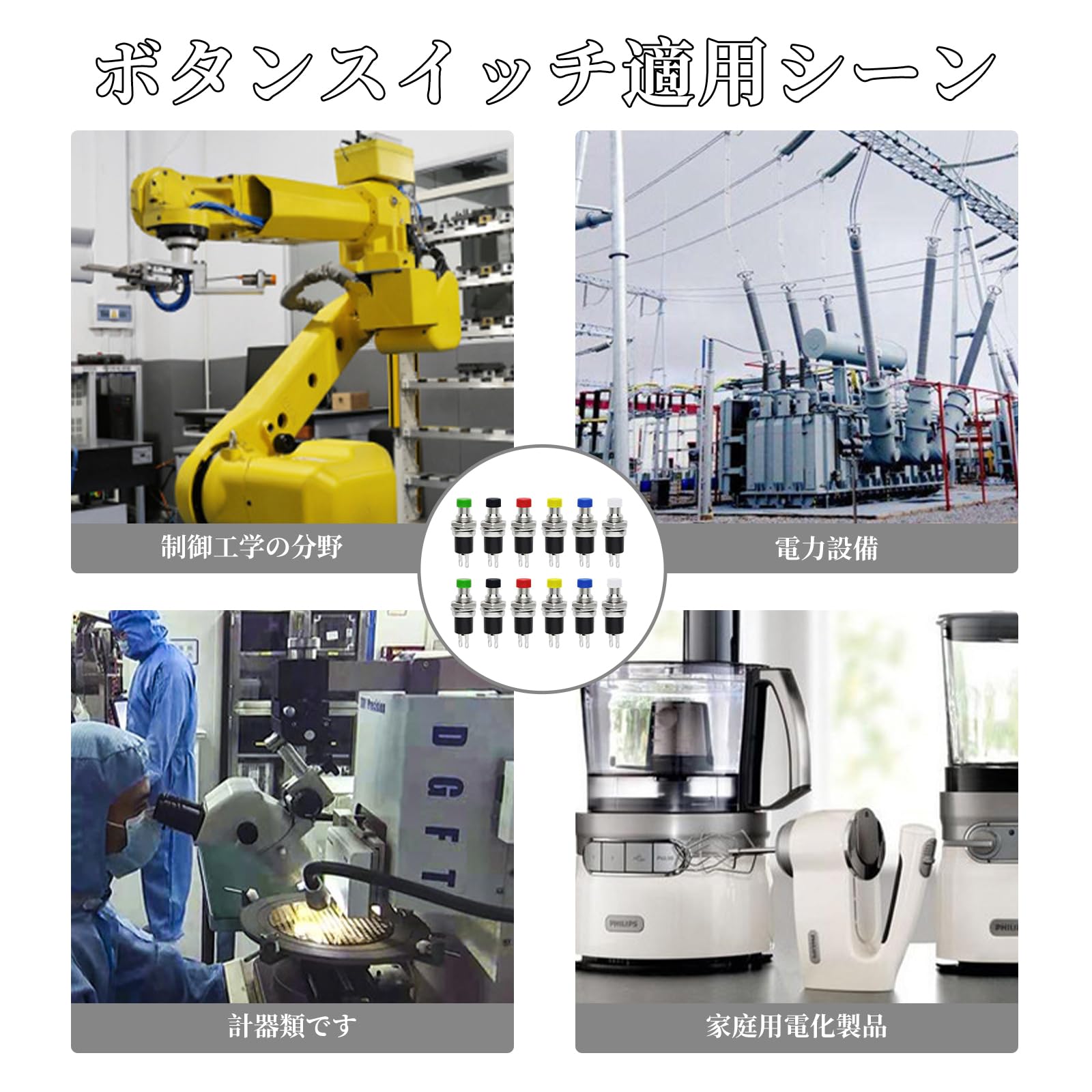 【幅広い用途】モメンタリ押しボタンスイッチは、多くの自動制御電気機器に広く使用されています。ライト、DIYプロジェクト、その他の回路制御機器を制御するのに最適です。