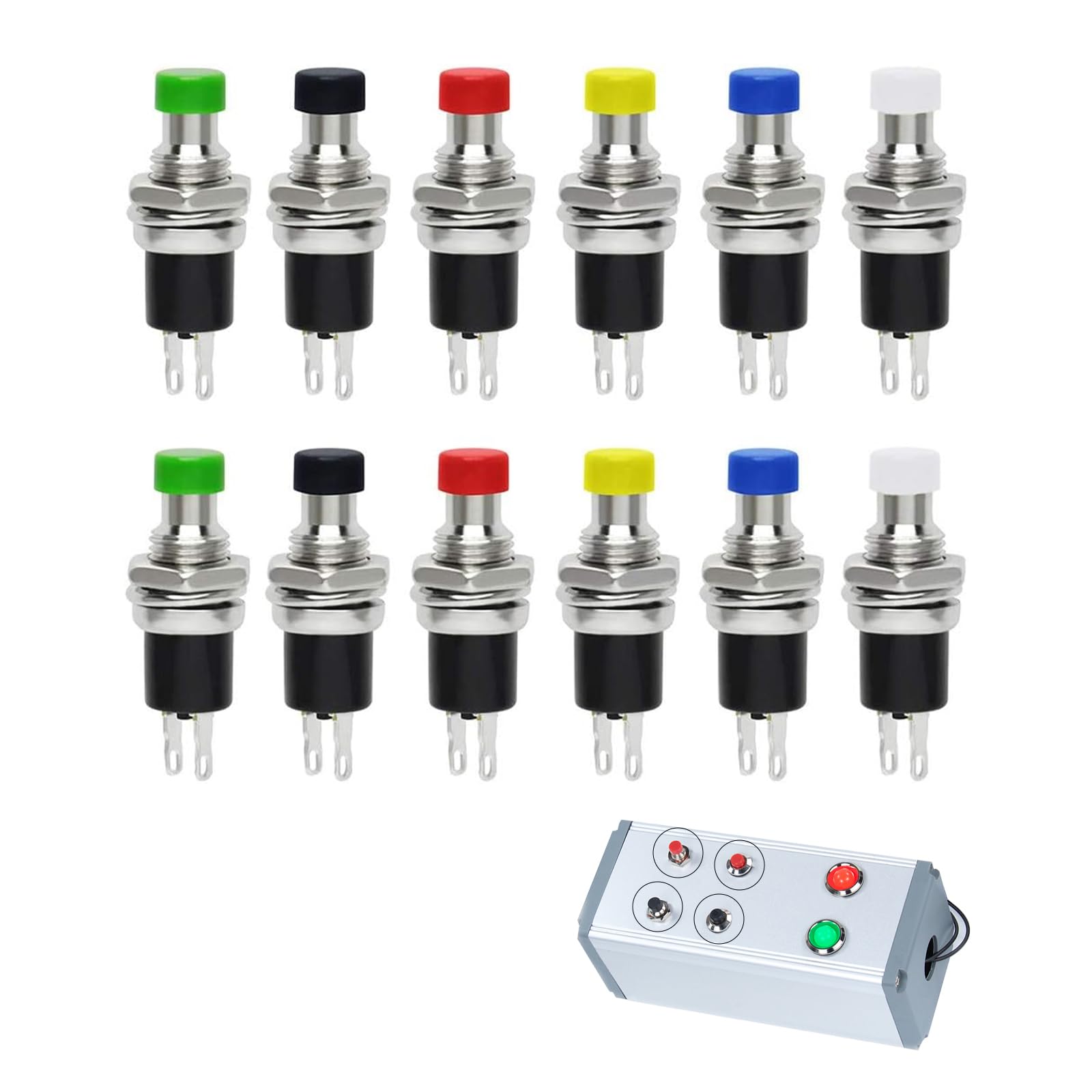 RICISUNG 瞬間押しボタンスイッチ 押しボタンスイッチ 6色12個セット プッシュボタンスイッチ ミ二プッシュボタンスイッチPBS-110 7mm 3A 125V 1A 250V 回路の制御に使用 電子機器