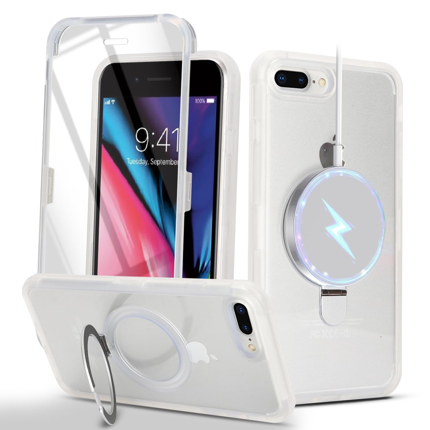 Lipvina iPhone 7Plus / 8PlusケMagsafe対応 スタンドクリア 両面強化ガラスで全面保護 米軍耐衝撃 半透明 リング付き ワイヤレス充電対応 マット感 黄変防止 アイフォン 透 ケース・スマホケース iPhone 7Plus / 8Plus 人気 5.5インチ(透明)