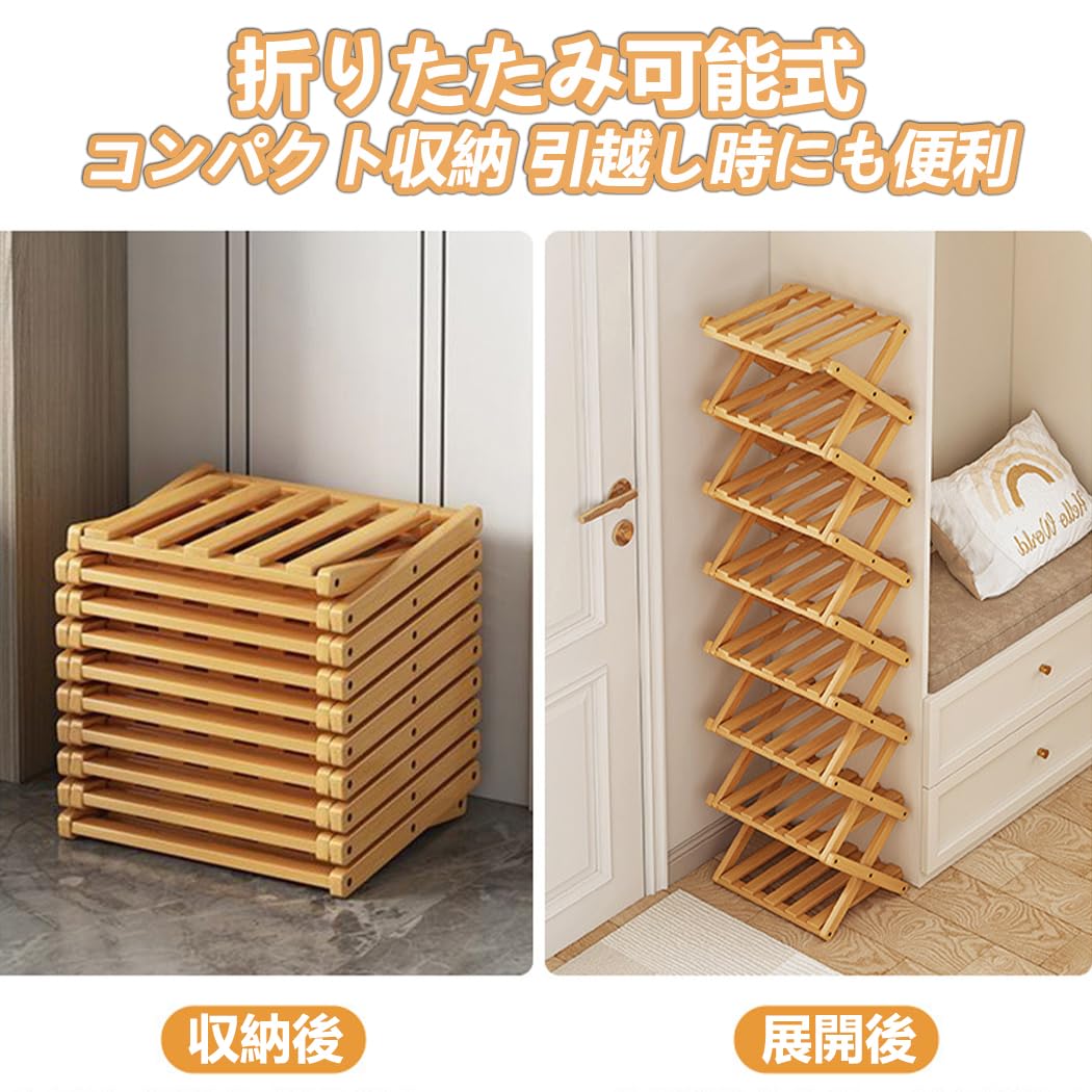 Yeziner シューズラック スリッパラック スリム 玄関 狭い 靴棚 下駄箱 スリッパ シューズ 省スペース 靴置き 収納棚 竹製 折りたたみ (茶色8段)