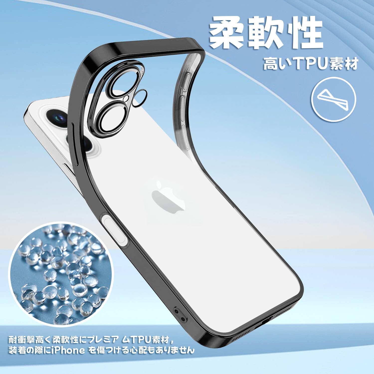 iPhone 16 用 ケース クリア 【カメラレンズ保護付き/フィルム付き】 アイフォン16 用 カバー スマホケース 透明 TPU 薄型 耐衝撃 スリム 黒 メッキ加工 黄変防止 ストラップホール付き ワイヤレス充電対応 iphone16 用 クリアケース ブラック