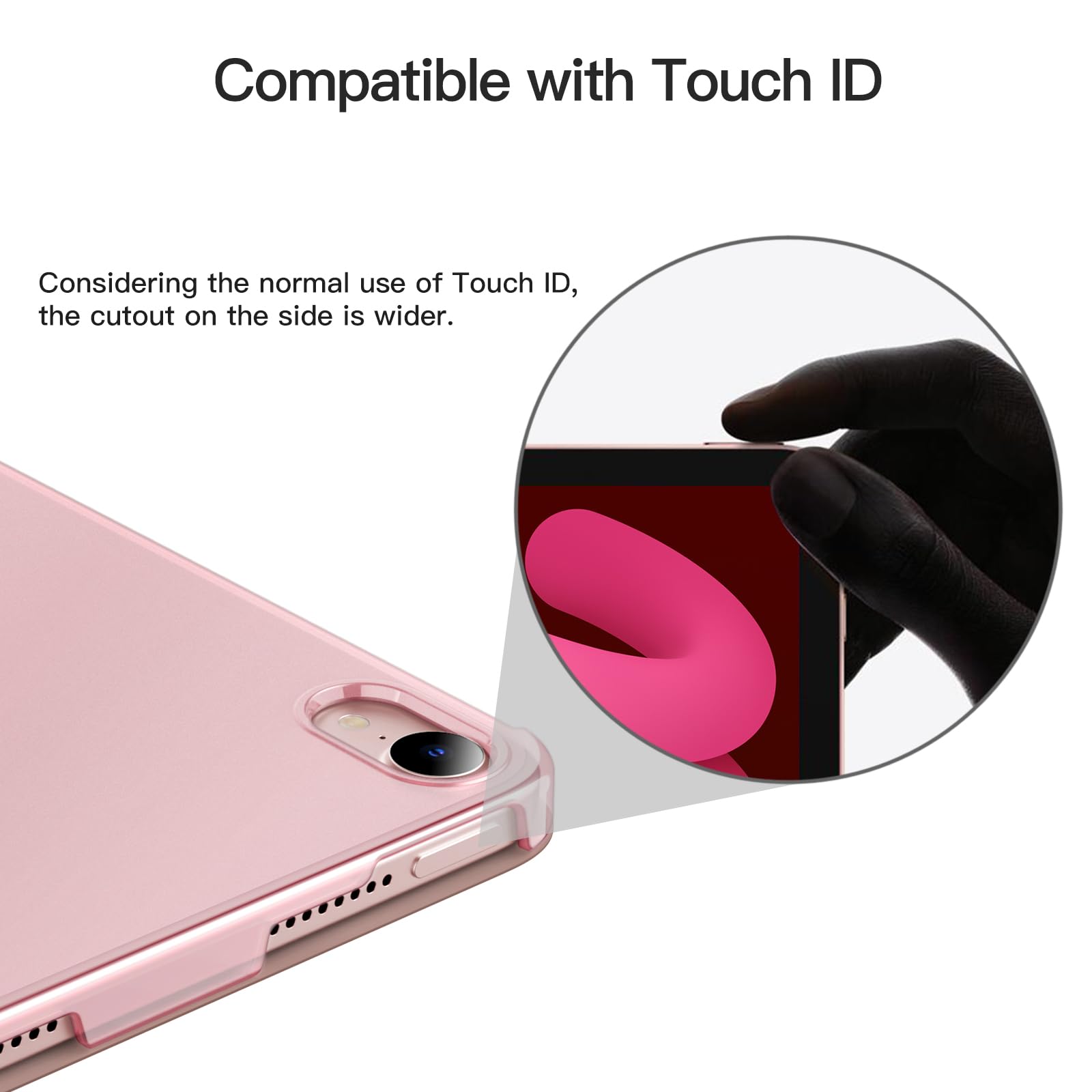 マグネット内蔵、オートスリープとオートウェイクアップ機能が付きます。三つ折りフロントカバーにより、視聴とタイピングに合わせた2つスタンド角度を調整できます