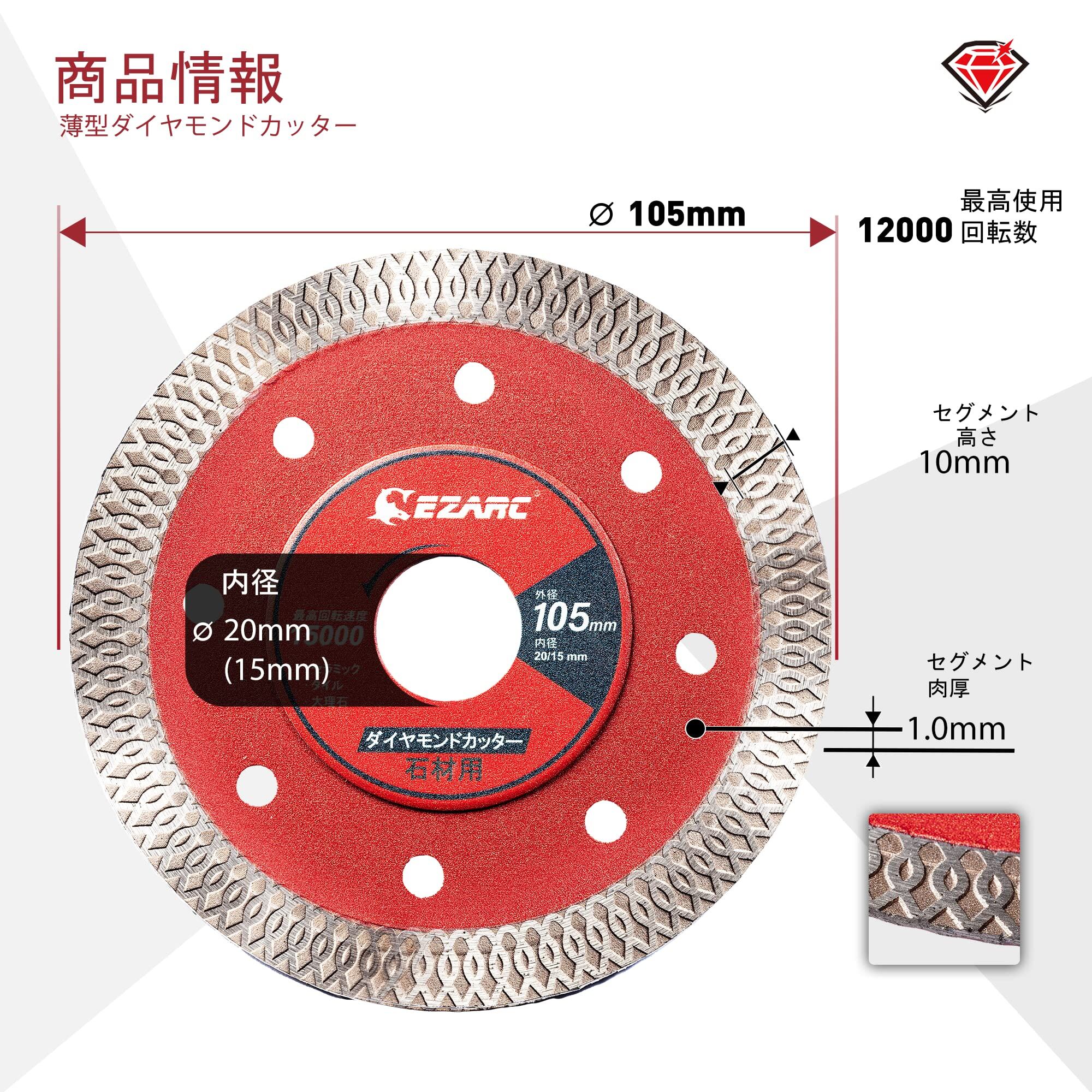 【数量限定】EZARC 薄型ダイヤモンドカッター 105mm 乾式 湿式 ダイヤモンドブレード 薄刃 ターボ 切断 高速研削 セラミック タイル 花崗岩 切断ブレード 2枚入れ