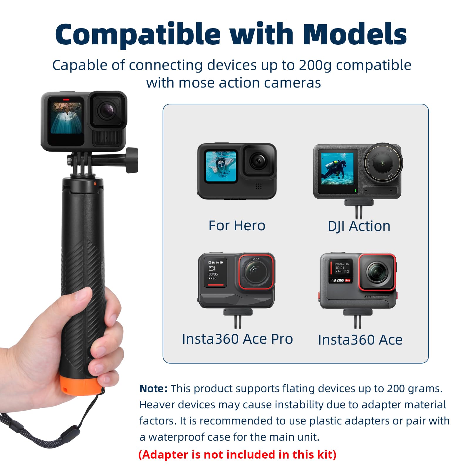 AFAITH カメラ自撮り棒 GoPro用 ミニ三脚 カメラ三脚 フローティンググリップ ダイビング撮影用 深水防護 3段伸縮 陸海両用セルカ棒 1/4インチネジ穴 多機能 軽量 滑り防止 手?付き 紛失防止 浮上設計 塩?試験合格品 アクセサリー Hero 13/12/11/10/9/8/dji action 5/4/3に適用
