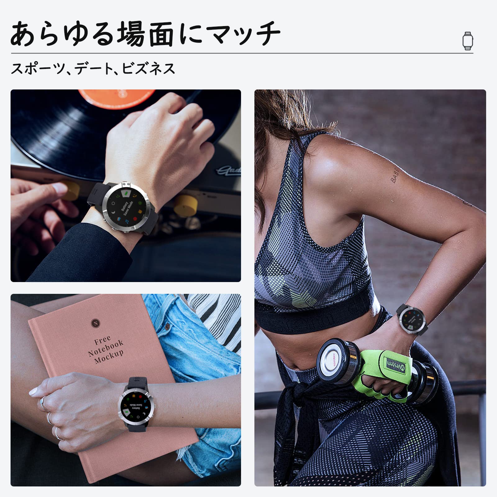 「あらゆる場面にマッチ」 シンプルなデザインされていますが、旅行、デート、ビズネスなど、あらゆる場面にマッチさせて、様々な服装にもお似合いできます。シリコン製のため、水を気にすることなく直接水洗い可能で、本体防水機能付いてあれば、そのままお風呂やプールでもそのままつけられます。