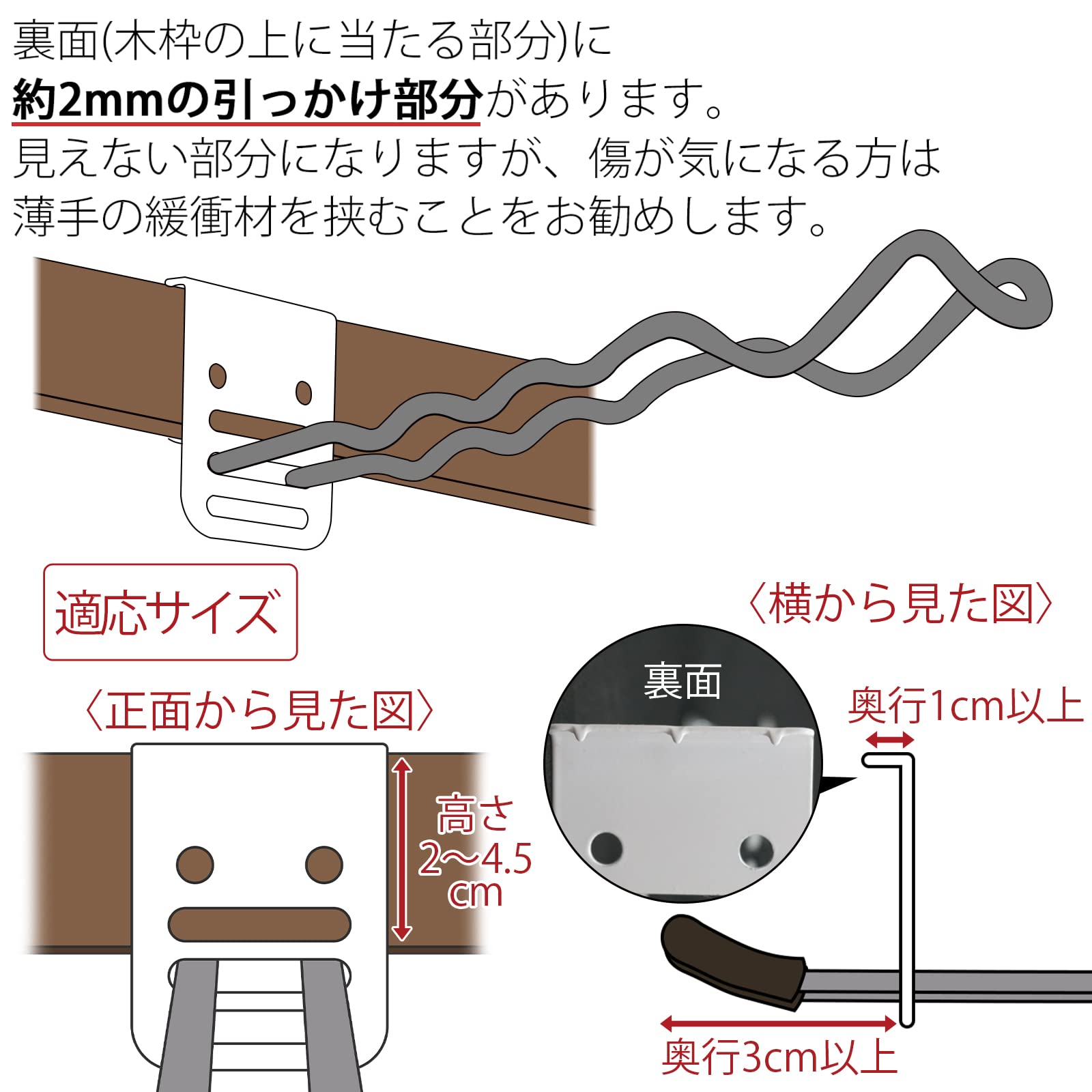 【注意事項】・取り付け可能な鴨居の幅は2~4.5cmです。