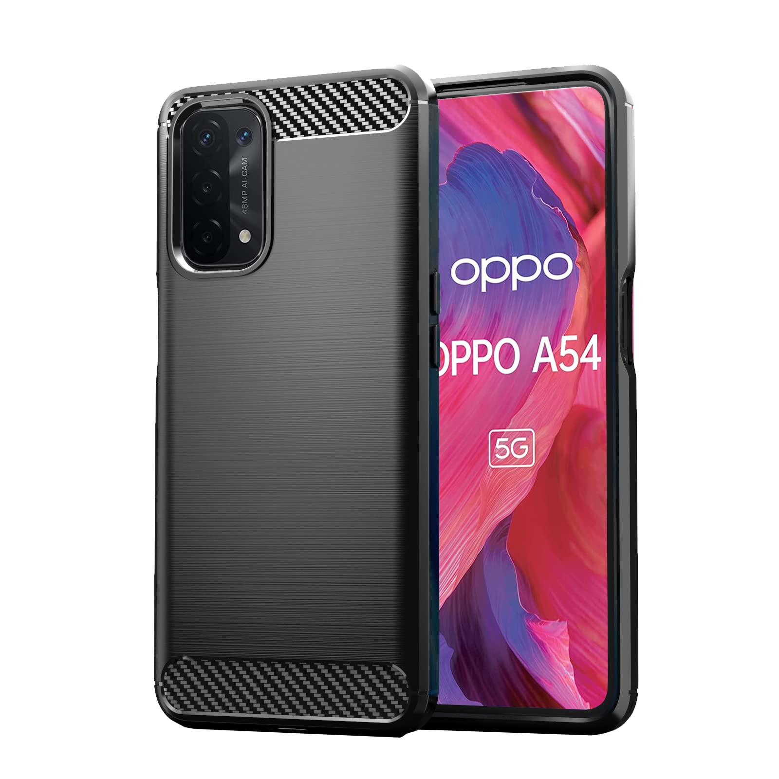 【在庫セール】【UNEED】OPPO A54 5G 用の スマホケース au OPG02 用の ケース カバー ケース 炭素繊維カバー (素材/TPU) 指紋防止 滑り止め 薄型 軽量 耐衝撃 簡易脱着 ソフトケース カラー:黒