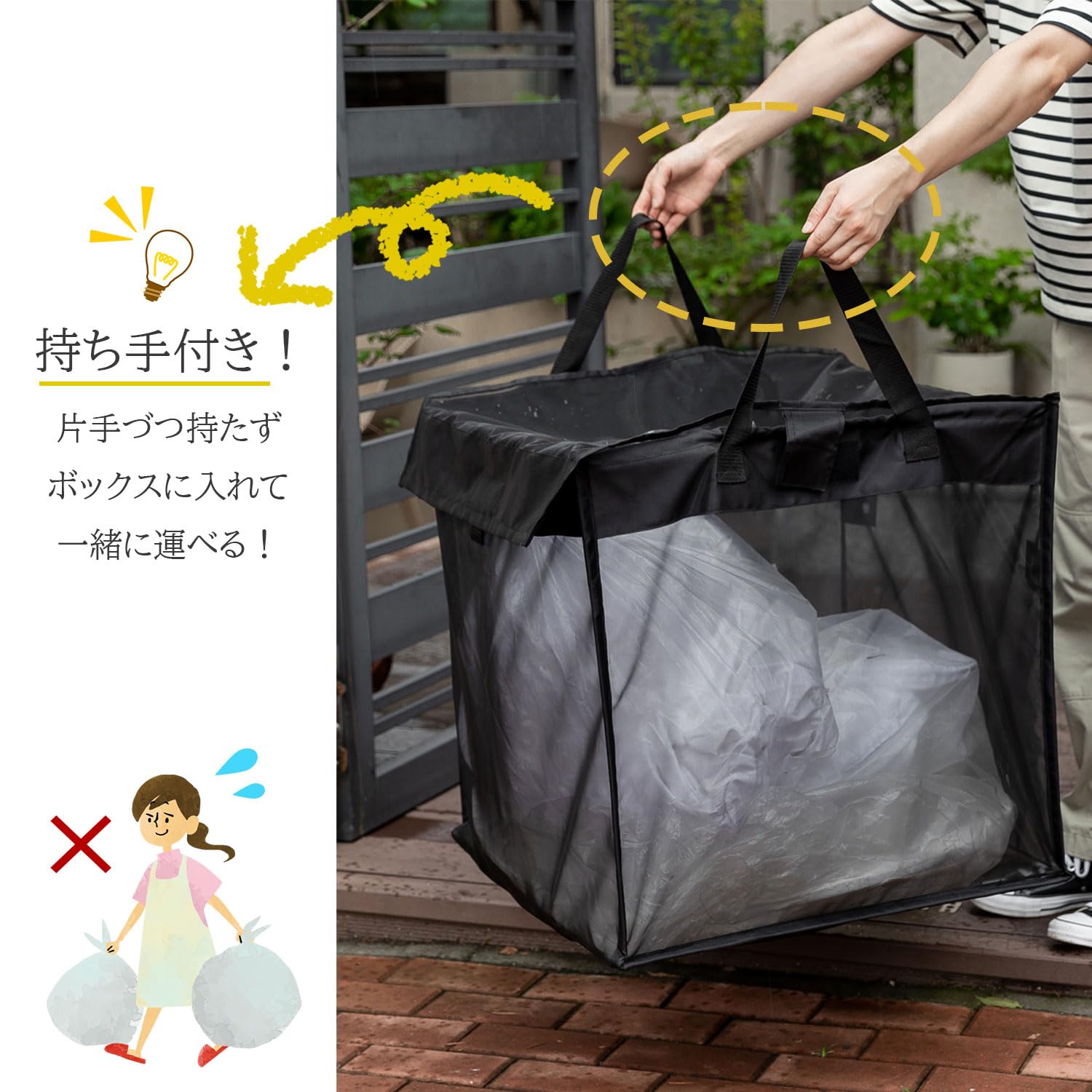 【フレーム付きで形が安定】底面用のフレームを入れる事により、ヨレヨレでごみ袋が入りにくい、または取り出しにくい 問題を解決、ボックスの形状を維持出来て見た目もキレイに。