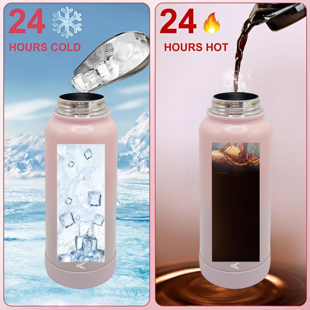 JINLING 魔法瓶 スポーツボトル 真空断熱 保冷保温 大容量 水筒 ステンレス鋼304 直飲み 0.6/1リットル (薄ピンク 1000ml)
