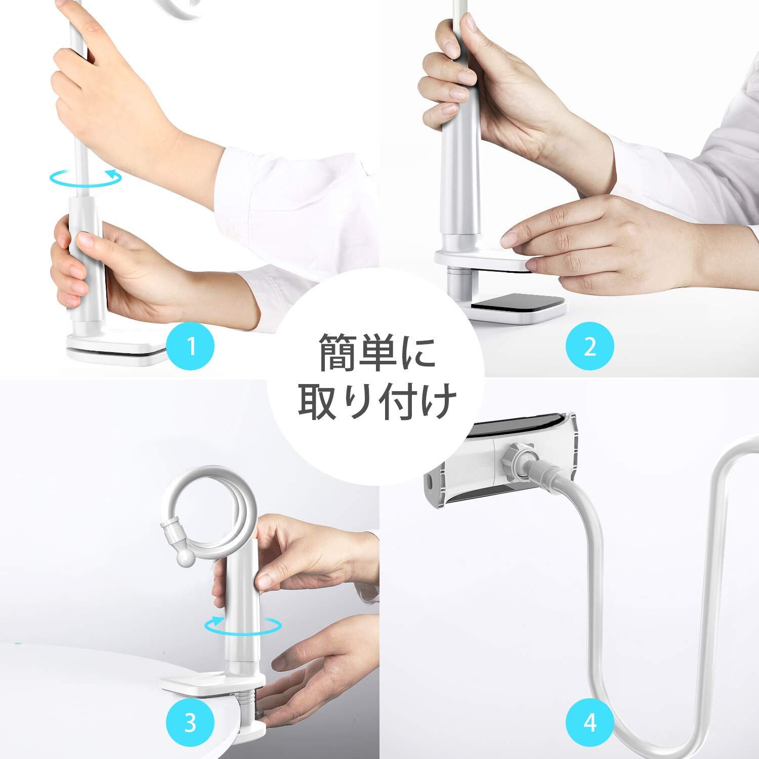 スマホスタンド フレキシブルアームスマホスタンド スマホアームスタンド 寝ながらベット用スマホホルフレキシブルアーム 360°角度調整可能 ベットスタンド クランプ式 アームスタンド 螺旋式 土台強化 滑り止め(3.5-10インチ)に対応 ホワイト