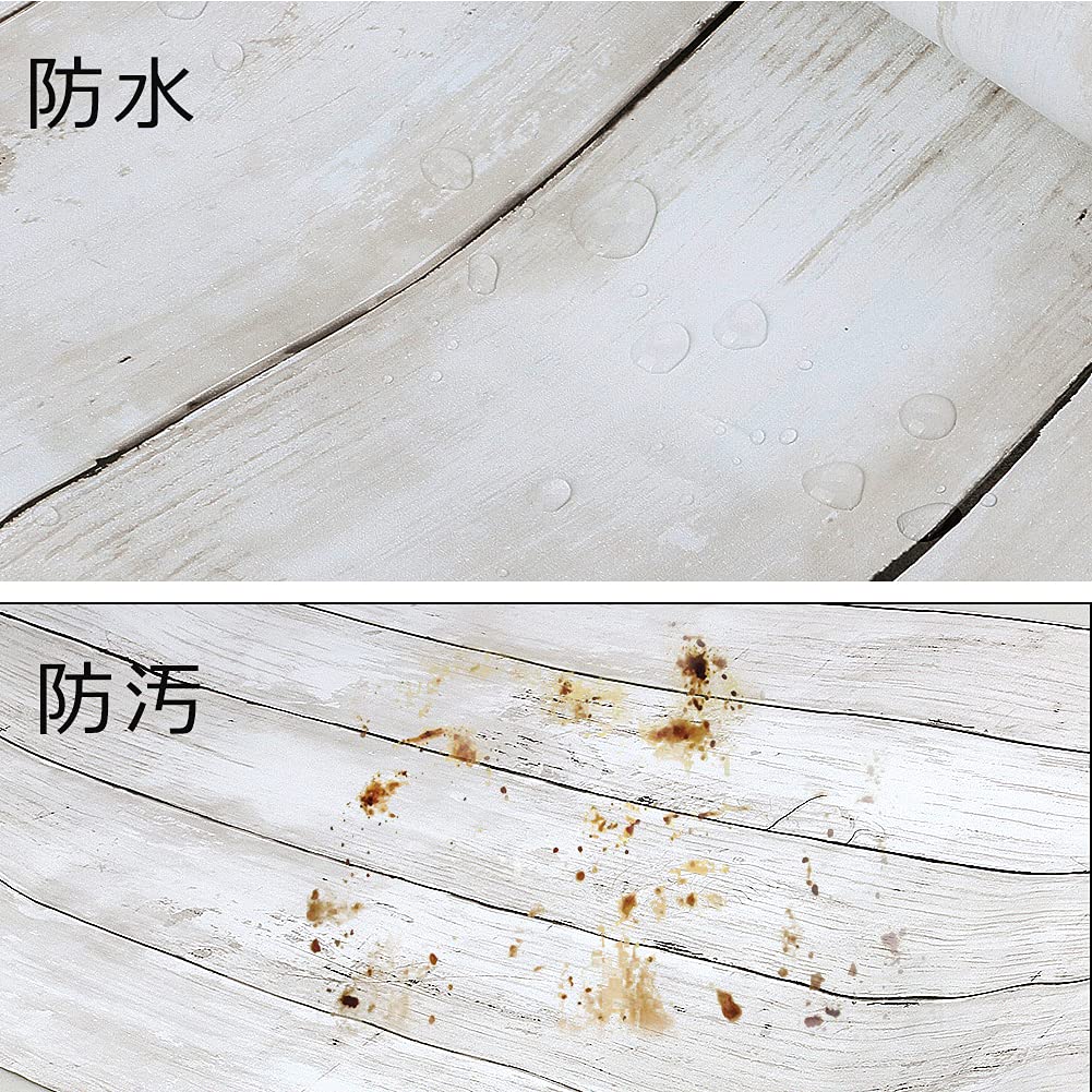 サイズ:約44.5cmx10m、厚さ:約0.1mm、スタイル:木目壁紙、材質:PVC(防水・防湿・防カビ)汚れがついたらすぐにさっとひと拭きできます。貼る対象物のほこりや汚れをきれいに取り除いてから施工してください。