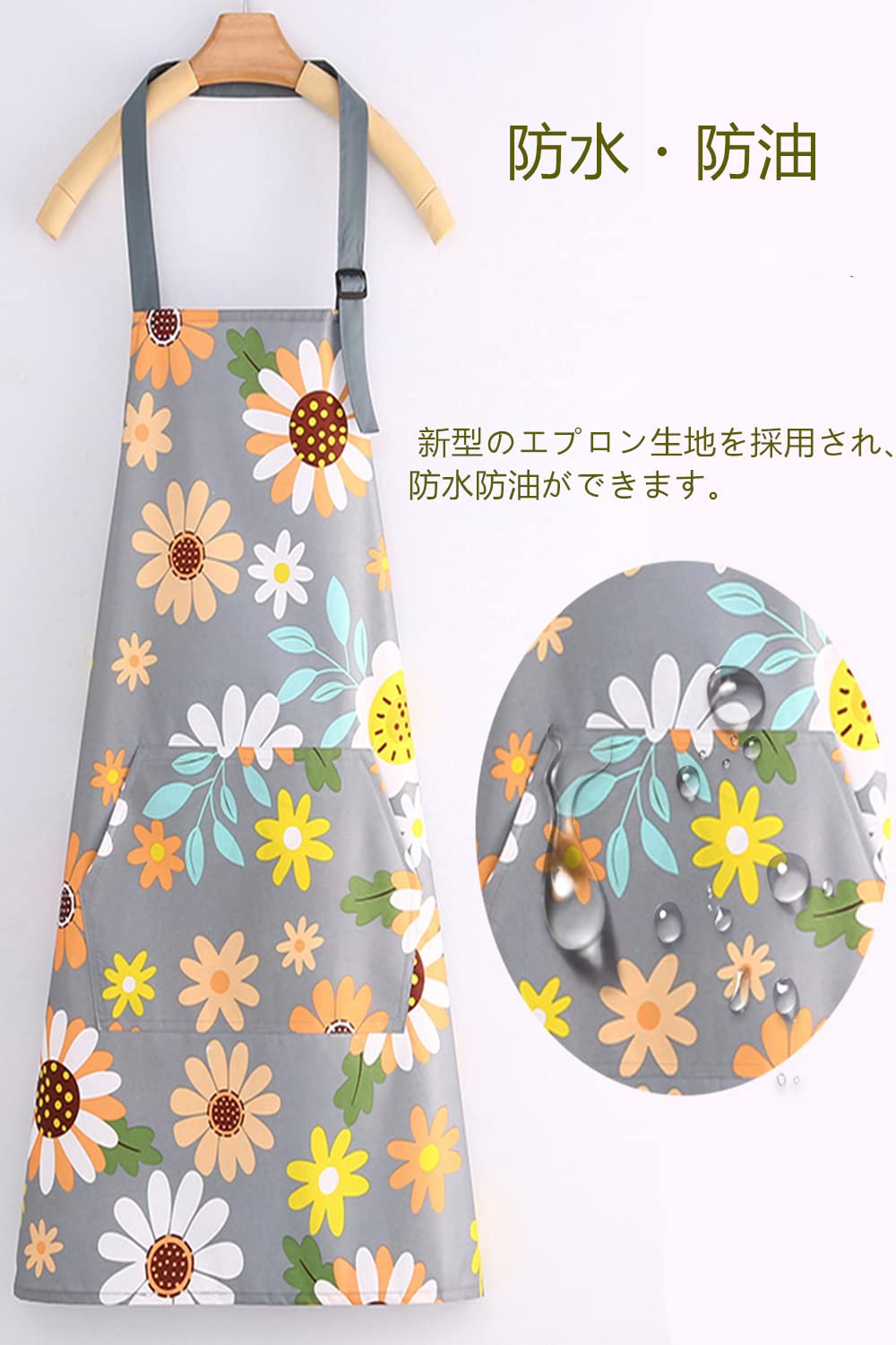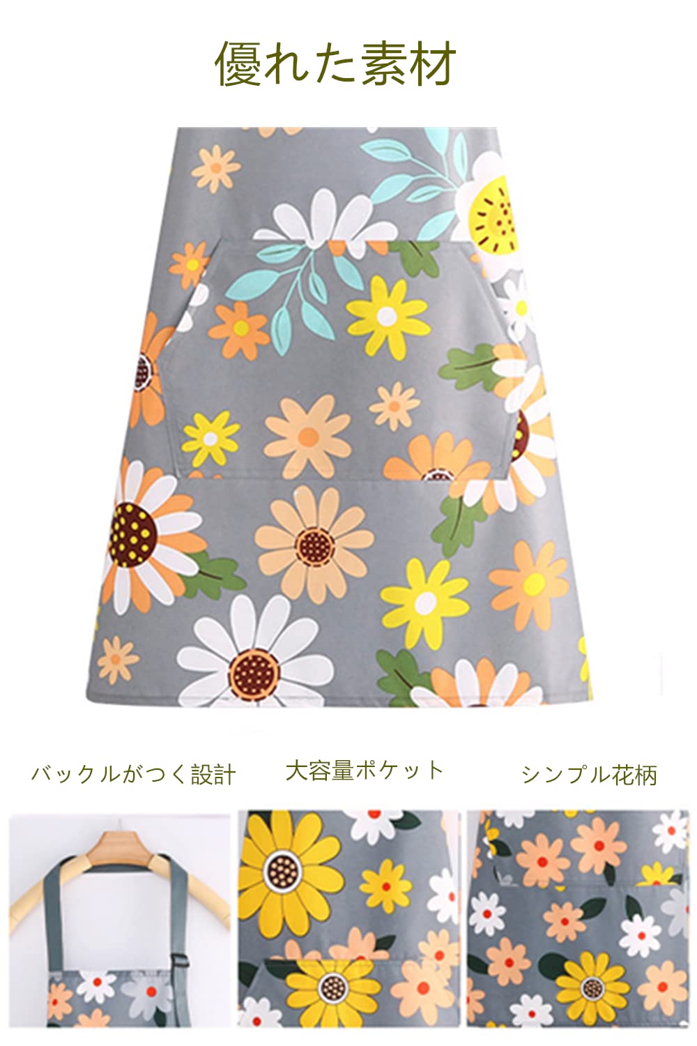 [LIKENNY] エプロン 首掛け シンプル北欧風大容量ポケット付けき 花柄 防水 汚れにくい シワ防止 料理教室用 カフェ 保育士 大人