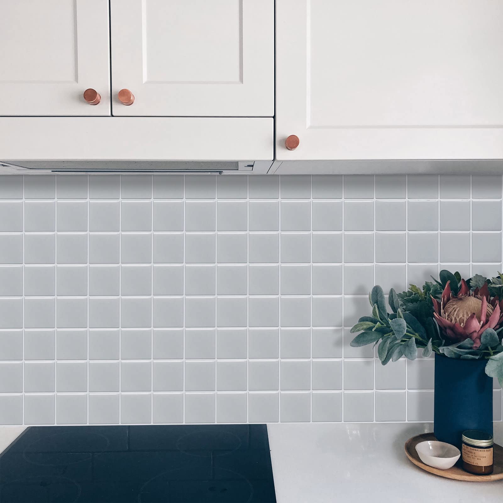 【売れ筋】MORCART タイルシール キッチン 耐熱 防水 洗面所 トイレ DIY 家具やアイテムの装飾 タイルシート 壁紙シール 3D リメイクシート (25x25cm 4枚 スクエア・ライトグレー)