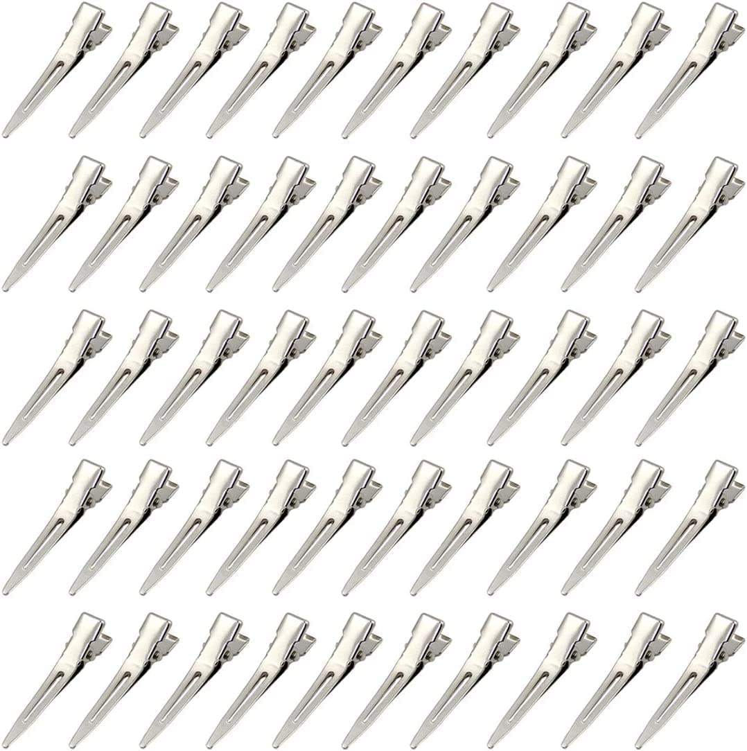 BetterJonny ダッカール ヘアクリップ プロ用 50本セット ワニ口クリップ 前髪 散髪 クリップ 美容業界 髪留め ヘアピン ワニクリップ ステンレス 前髪クリップ 4.5cm (シルバー)…
