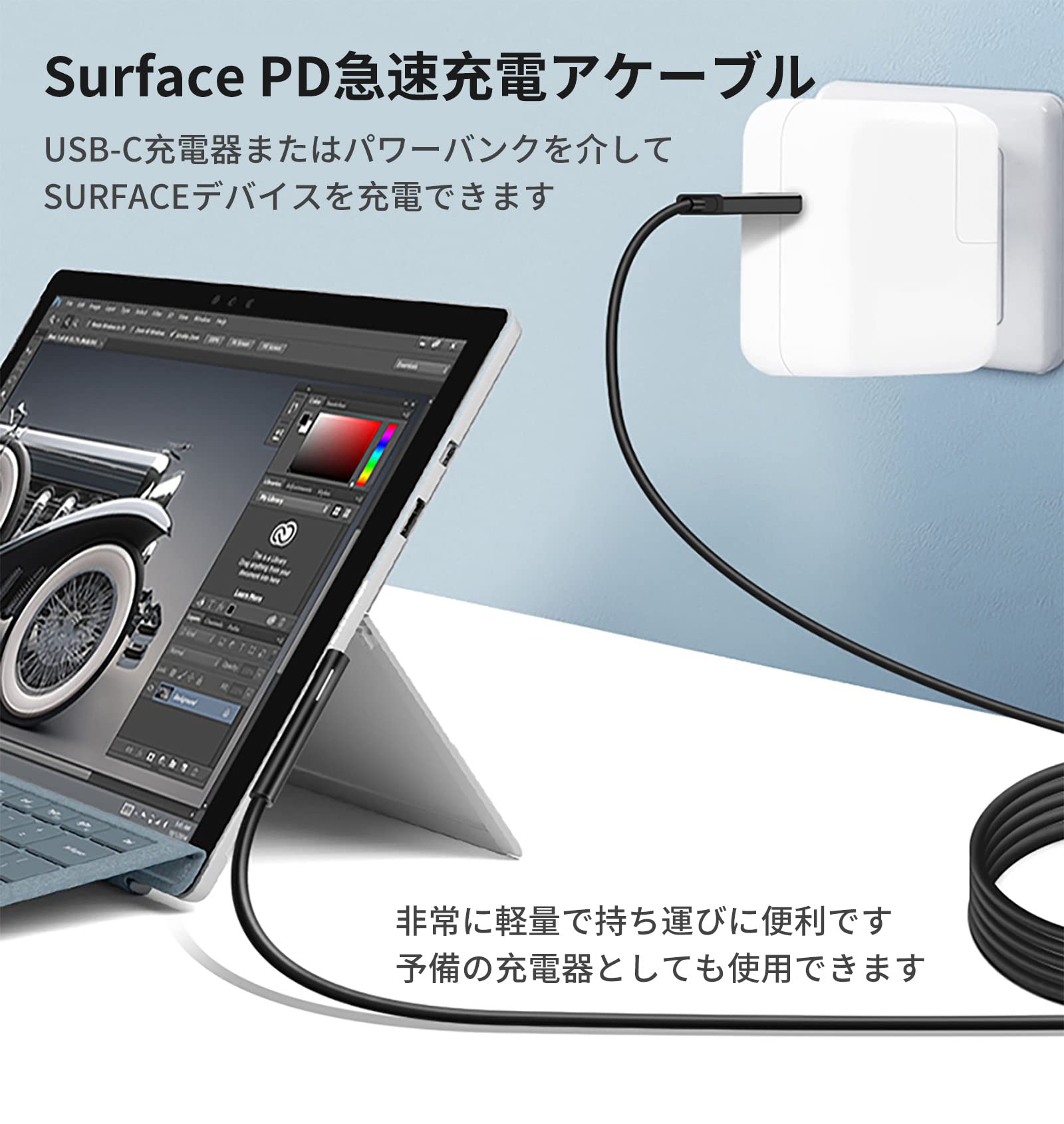 Sisyphy USB C to Surface 急速充電ケーブル「黒PVC表面 1.8m CE認証済」、15V/3A 45W USB Type C PD充電器必要、マイクロソフト Surface Pro 11/10/7/6/5/4/3/X Surface Go3/2/1 Surface Laptop 4/3/2/1 タブレット対応