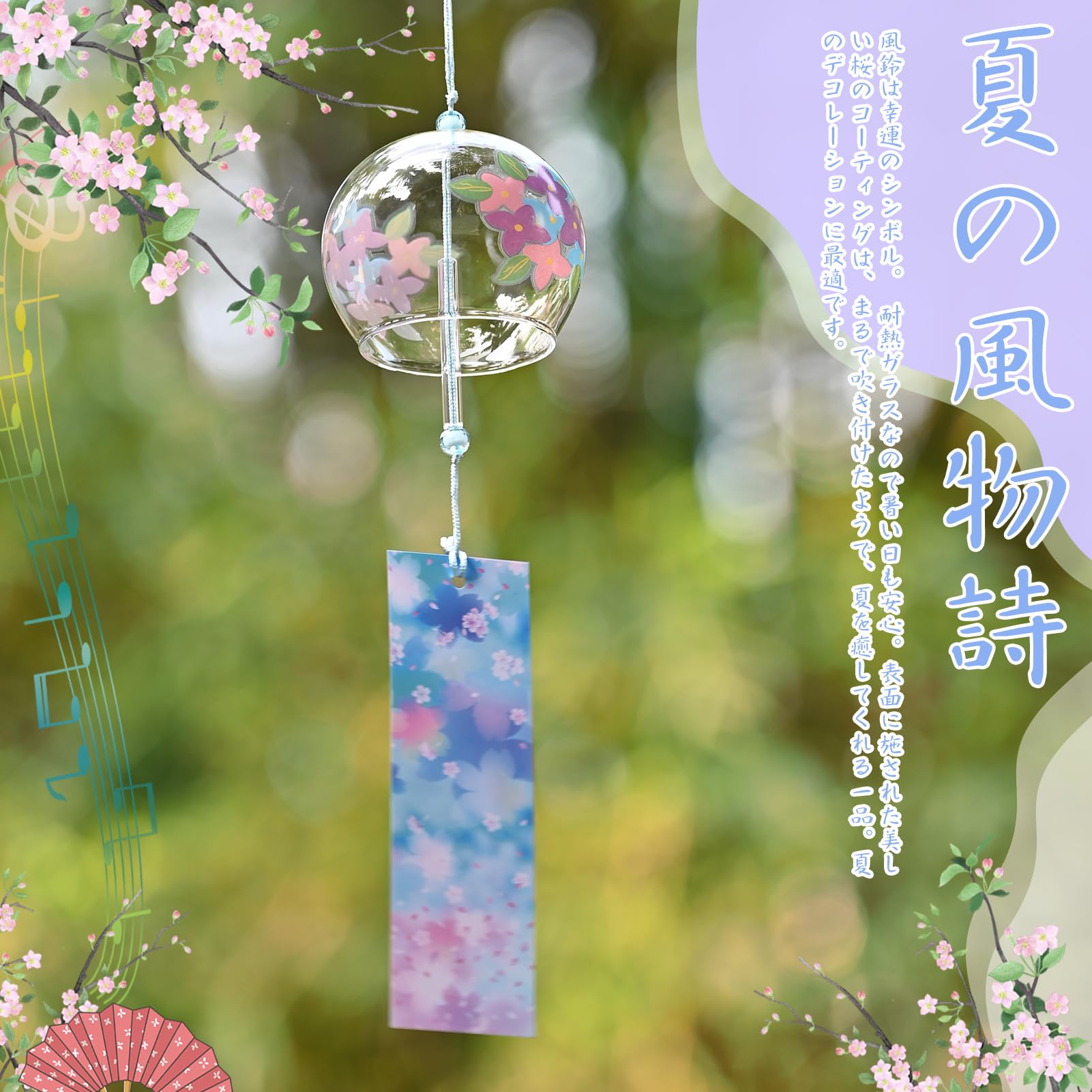 【多彩な設置場所】和風庭園はもちろん、ベランダやリビングなど、屋内屋外を問わずお使いいただけます。微風に反応する繊細な設計で、ささやかな風でも心地よい音色を奏でます。夏の装飾として、またインテリアアクセントとしてもご活用ください。