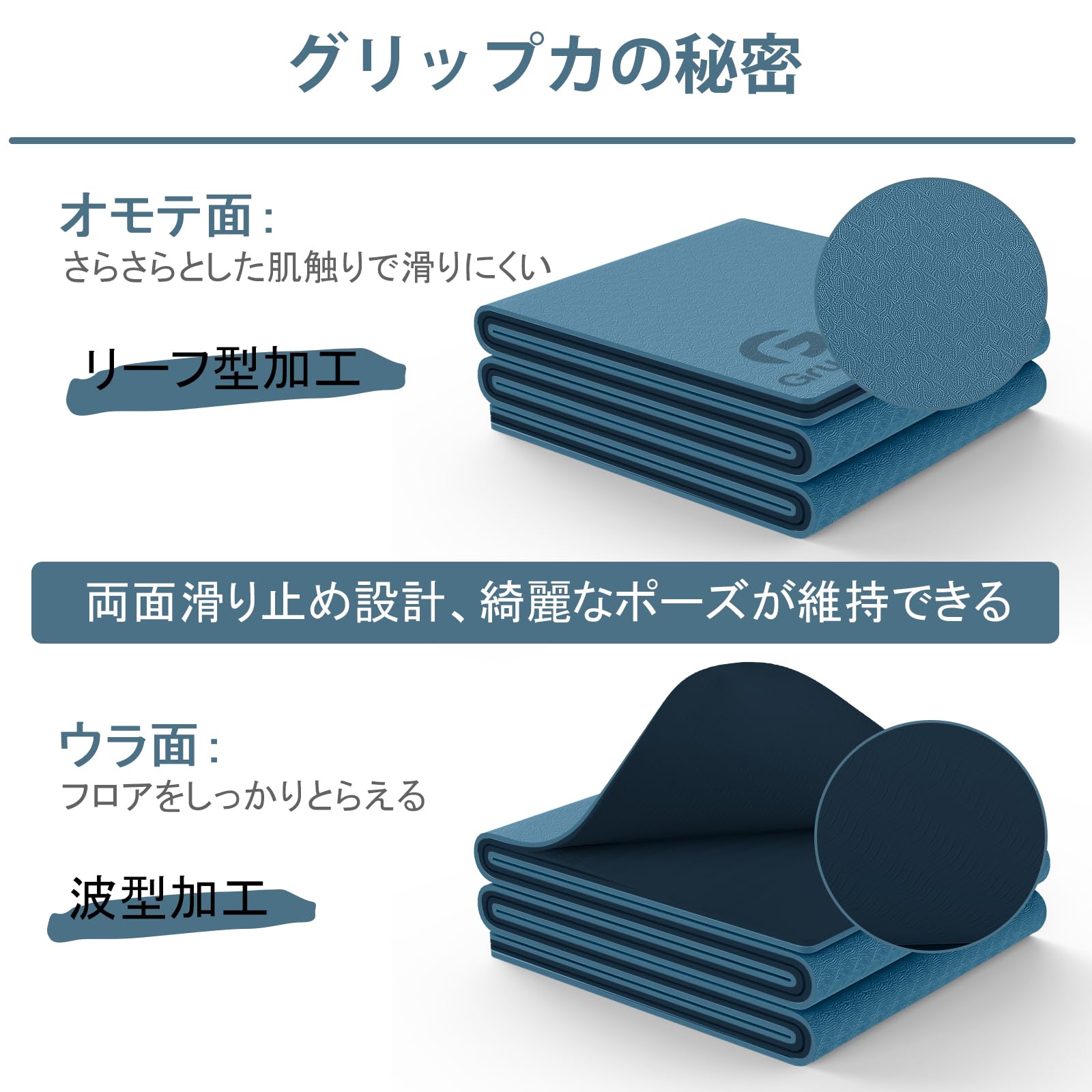 ? 【両面滑り止め設計】滑り止め能力抜群(手足の汗があっても滑り止め能力低下しない)、いつでも綺麗なポーズが維持できます。地面に付着力、耐衝撃性、耐磨性、抗裂性を持ちます。且つ直接に水洗いでも問題ないので、清潔や保管にもとても便利です。