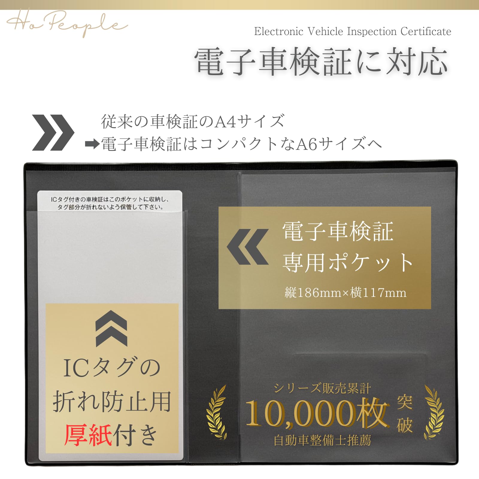 HoPeople 車検証ケース 車検証入れ 電子車検証ケース 新規格 電子車検証 自賠責ポケット付き (ブラック)