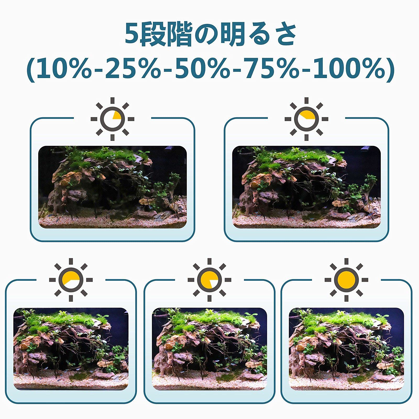 【高品質の水槽ライト】:Hygger水槽ライトの光は、演色評価数は自然光に近い、85%になります。目と魚を保護し、魚と視聴者にストロボ効果によって引き起こされる不快感を防ぐことができます。 高品質の2835+ 5050モデルランプビーズを使用して、少なくとも50,000時間の耐用年数があって、高い耐久性です。