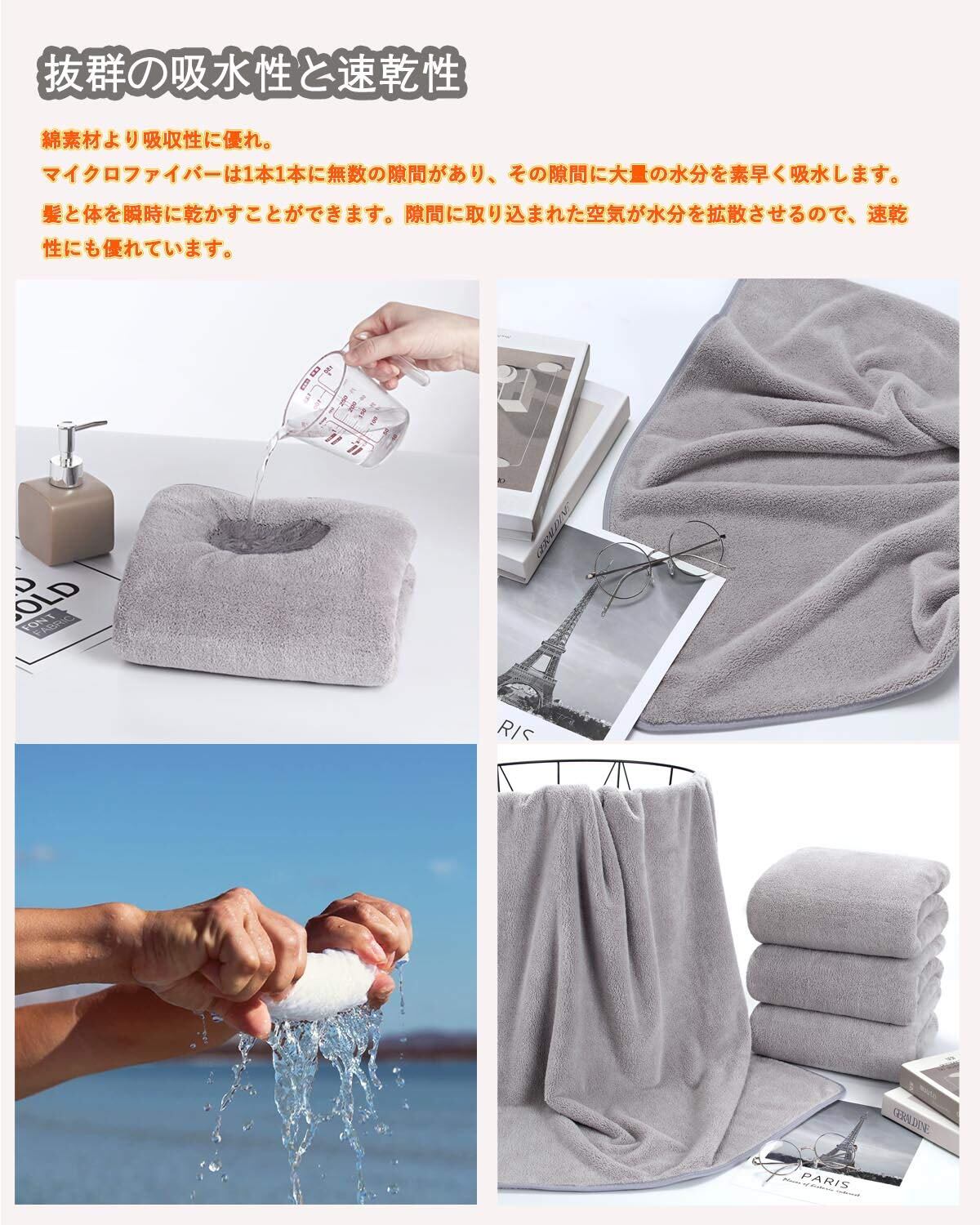 【バスタオル 4枚セット】サイズ:約70×140cm、重量:約300g(1枚あたり)セット内容: ライトグレー2枚。出張、旅行、入浴、ご家族皆さんが満足できます、様々な場合で活躍。