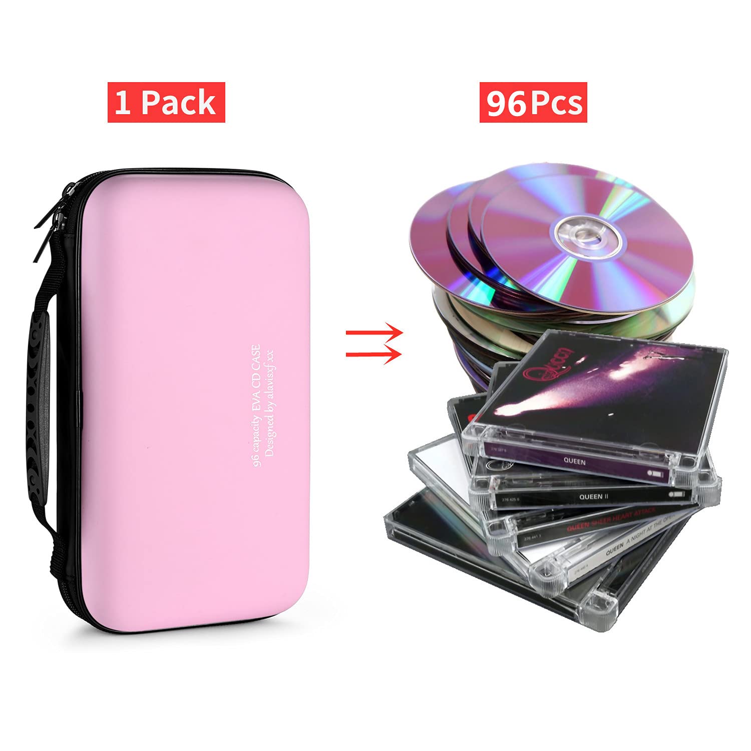 LIOVODE 96枚収納 CDケースポータブルEVA blu-ray ディスク収納ケース 大容量 DVD/VCD 収納 (96枚 ピンク 96)