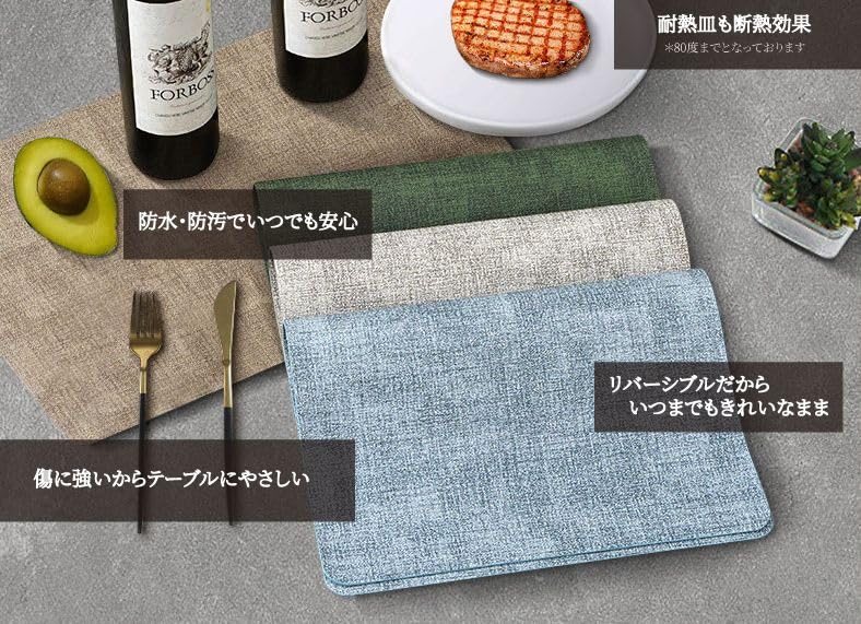 80度までの防熱機能によりテーブルへの負荷を軽減し、大事な家具を保護してくれます。万一熱で変色しても、両面使えますので、傷んだ後はひっくり返してご利用いただけます。(断熱機能ではございませんので高熱の調理器具には使用できません)