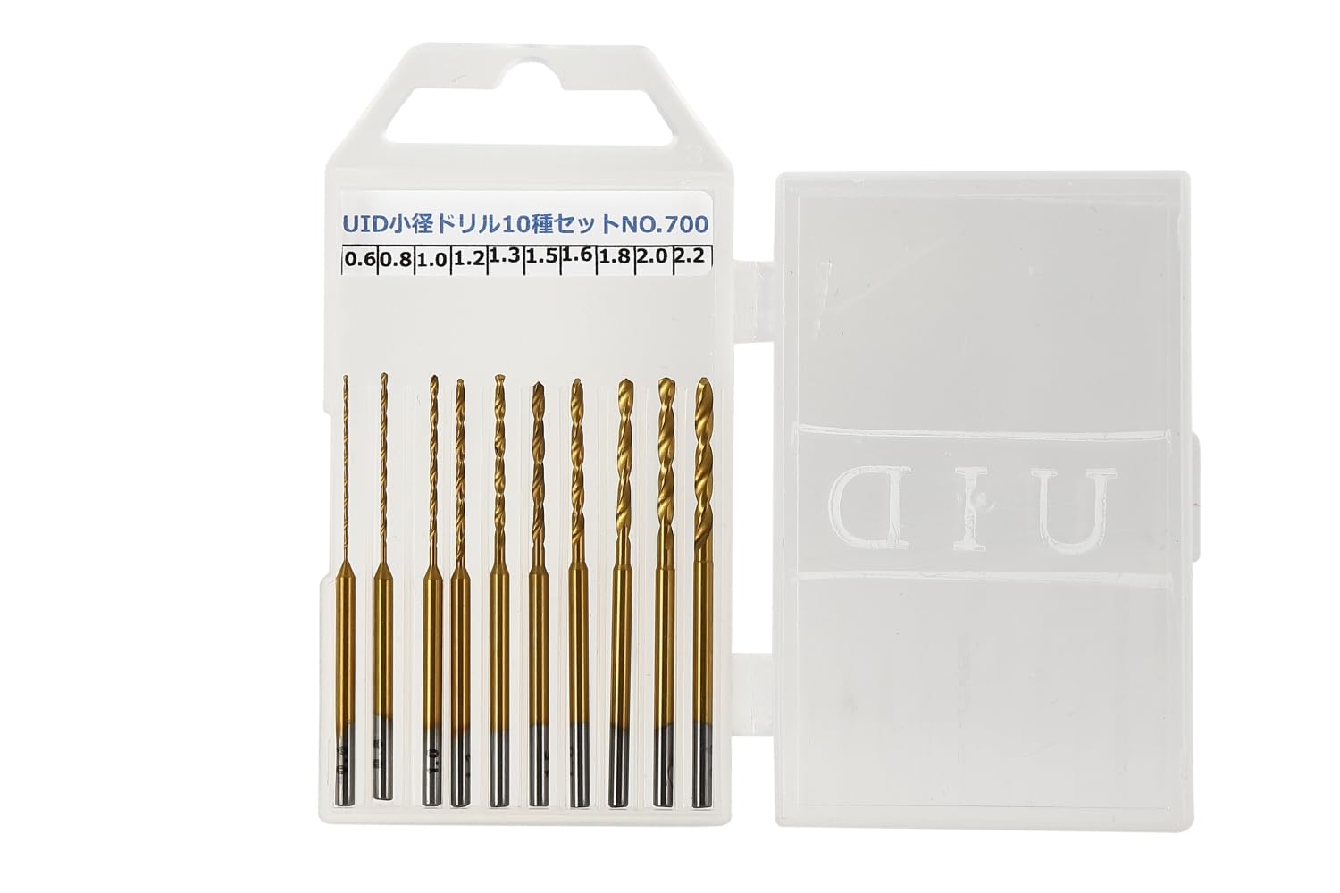 【在庫処分】UID 各サイズ刻印 チタンコートミニルーター/リューター/ホビールーター小径ドリル 10種セットProxxon(プロクソン) Ryobi(リョービ) Bigman(ビッグマン) iHelp(アイヘルプ) アルゴファイル 標準コレット2.35mm対応 チタンコートで長寿命(当社比約2倍)!! 保管に便利なP.P.ケース付き NO.700