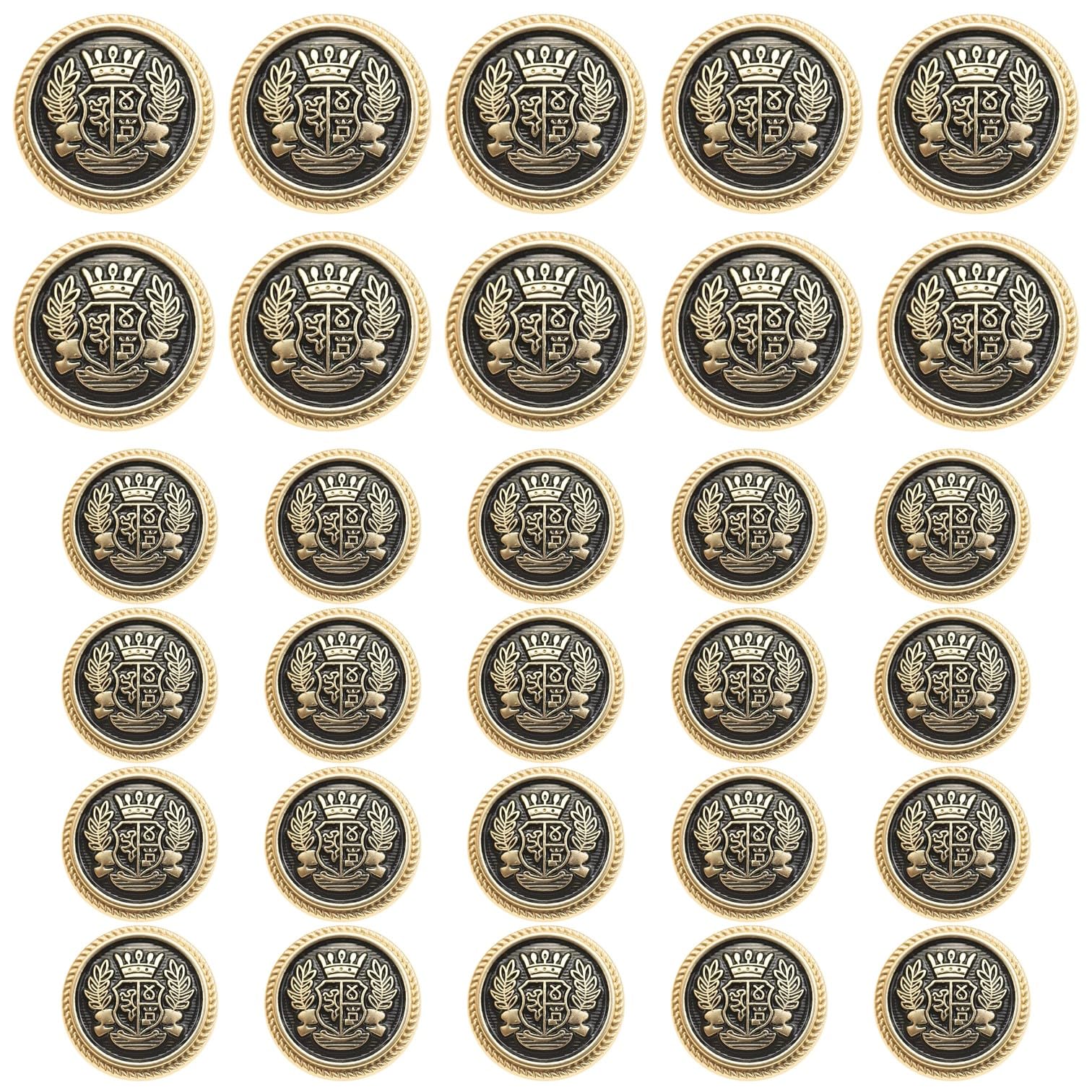 EXDUCT ブレザー スーツ 手芸 ボタン 前ボタン 20mm 10個 袖ボタン 15mm 20個 シングル5着分 (ブラック&ゴールド)