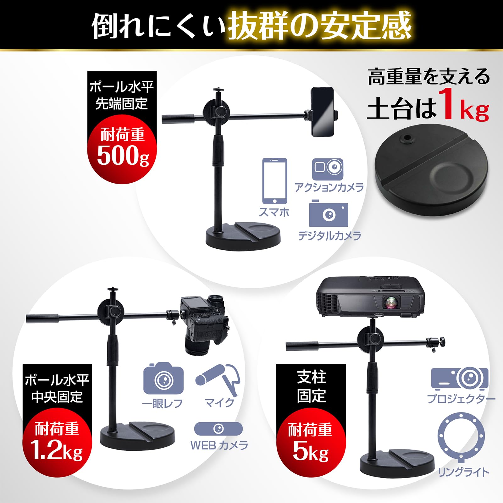 MERSHEART スマホスタンド 俯瞰撮影【人気フォトグラファー監修】 真上から撮影 スマホ撮影 タブレットスタンド 一眼レフ プロジェクター WEBカメラ 耐荷重500g?5kg ライブ配信 YouTube 卓上 影なし iPhone (60cm)