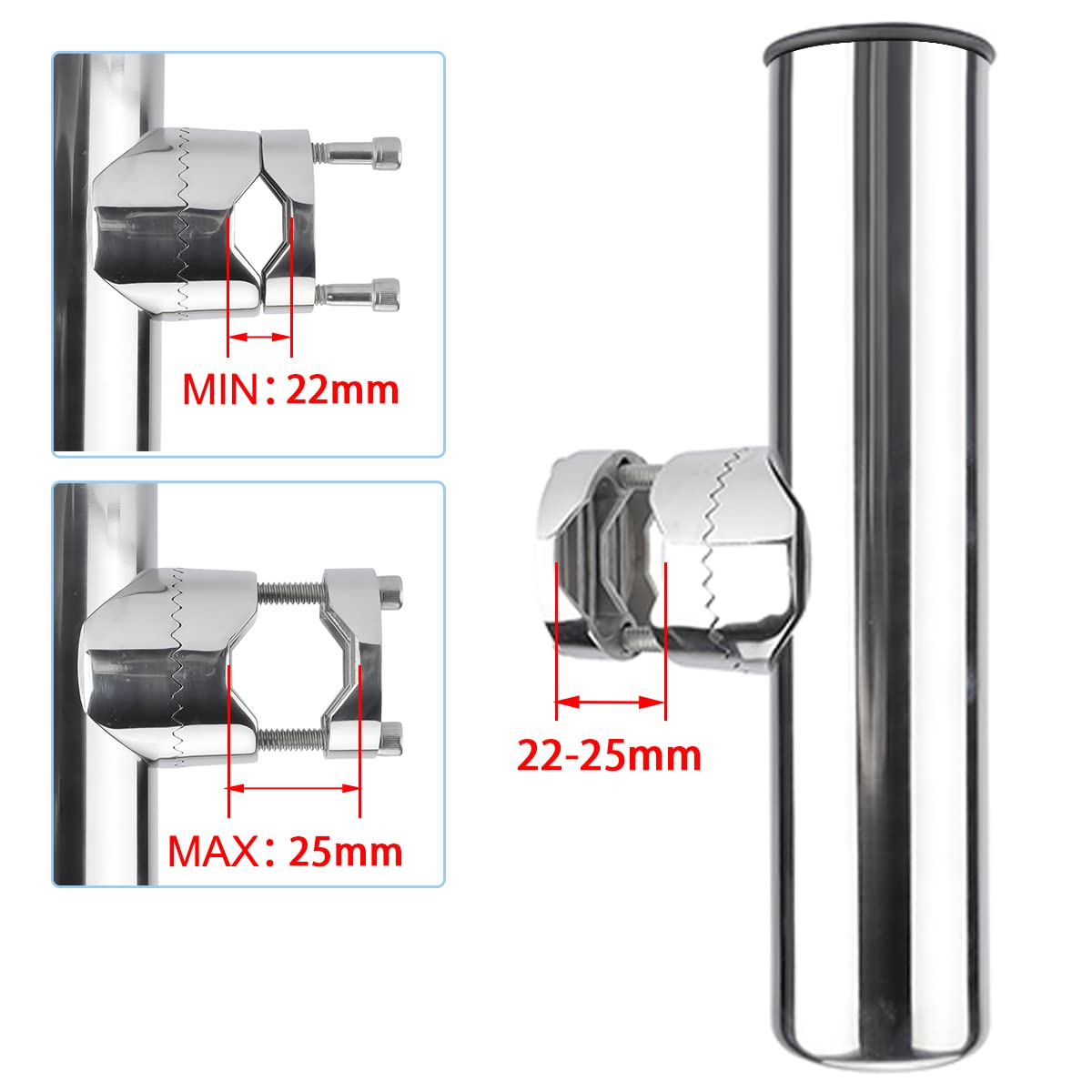 Amarine-made ステンレス製 船竿置き クランプオンロッドホルダー 4個セット 角度調節可能 六角レンチ付き