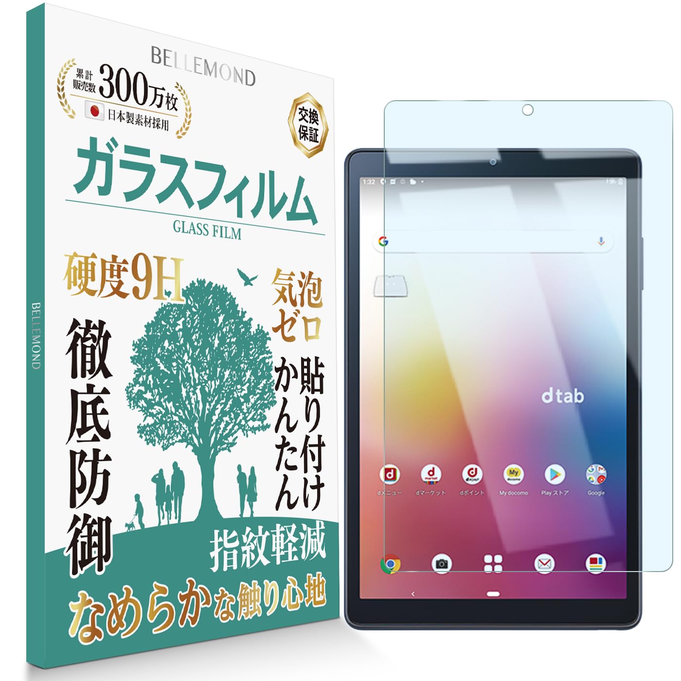 ベルモンド dtab Compact d-42A ブルーライトカット ガラスフィルム ブルーライト軽減 硬度9H 指紋防止 気泡防止 強化ガラス 保護フィルム ディータブコンパクト BELLEMOND d-42A GBL B0284