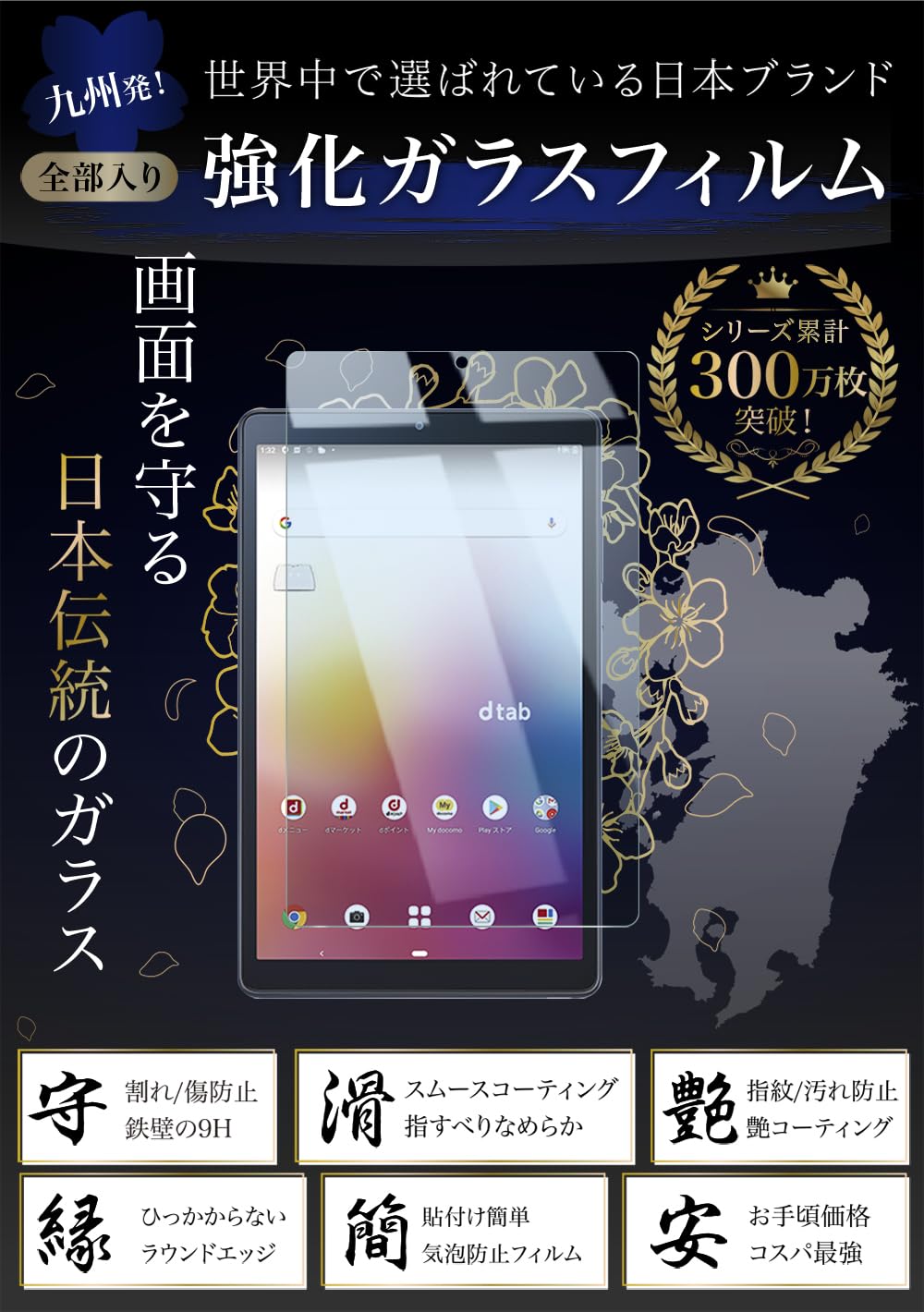 【対応機種】dtab Compact d-42Aに対応。【ブルーライトカットタイプ】カット率は95%以上です。黒縁付きの全面保護仕様です。※ブルーライト危険域(380nm-410nm)のブルーライトカット率【セット内容】強化ガラスフィルム×1、拭き上げキット×1、共通説明書×1(商品にあった説明箇所をご確認ください)