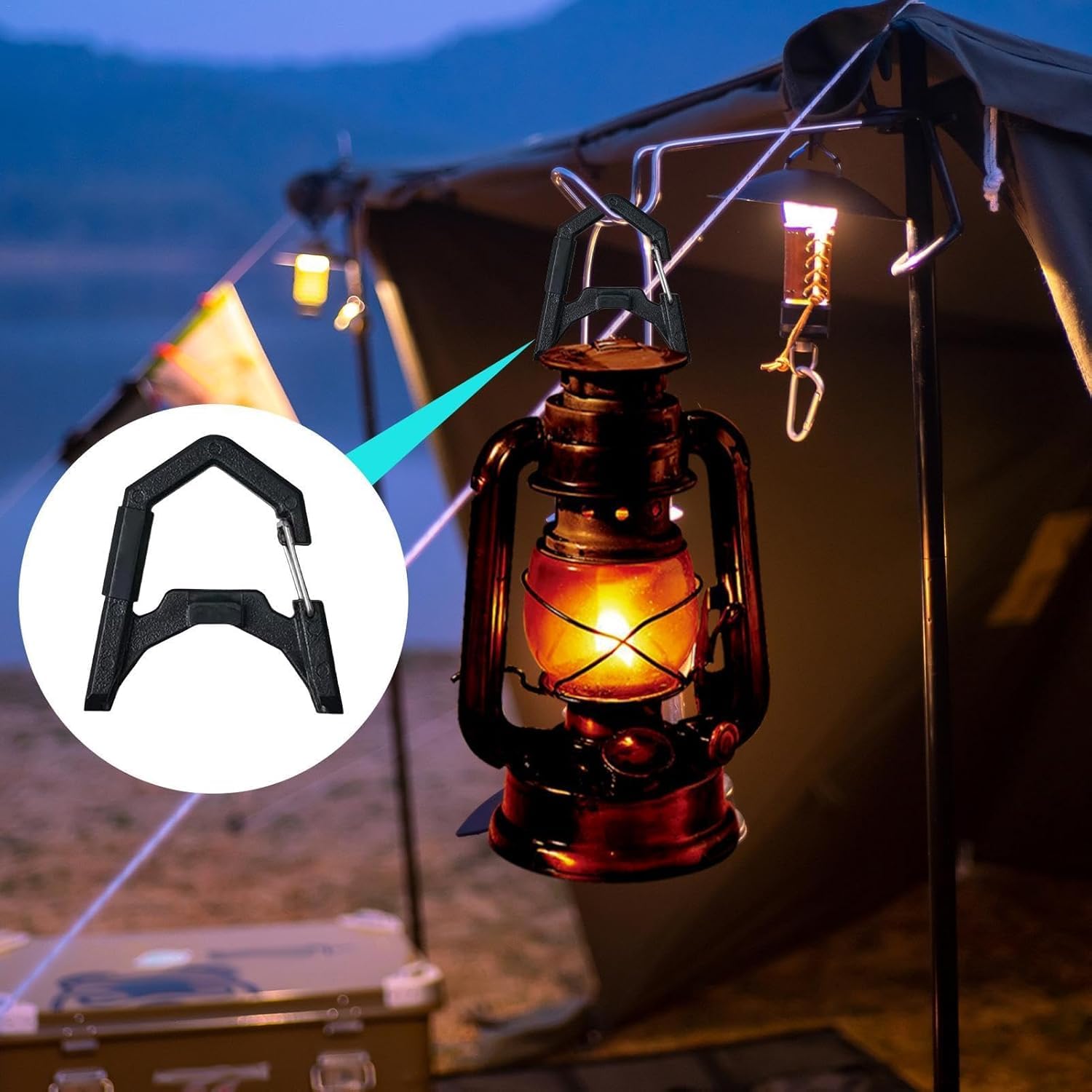 【脱落防止】この照明フックはランタンや照明器具をしっかりと固定し、隙間風が吹く状況でも偶発的な落下や滑りを防ぎます。また、床面積を節約して他の目的に使用できます。