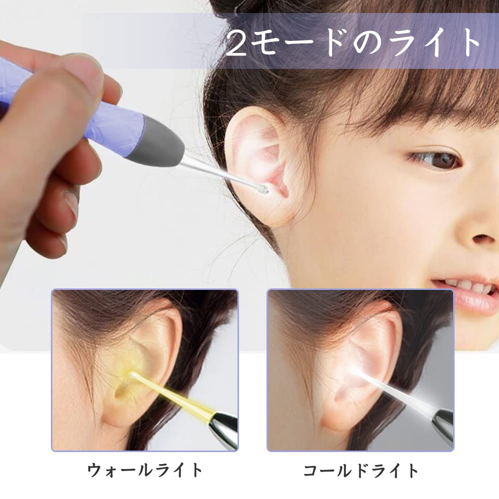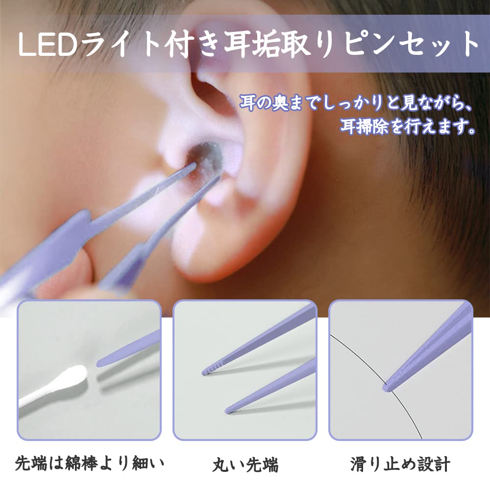 LEDライト付 耳かき ピンセット USB充電式 みみかき 耳掃除 鼻くそ取りピンセット 耳かきセット ライト付耳かき 鼻洗浄ピンセット 子供/お年寄り/家庭用 はっきり見える 携帯便利 (パープル)