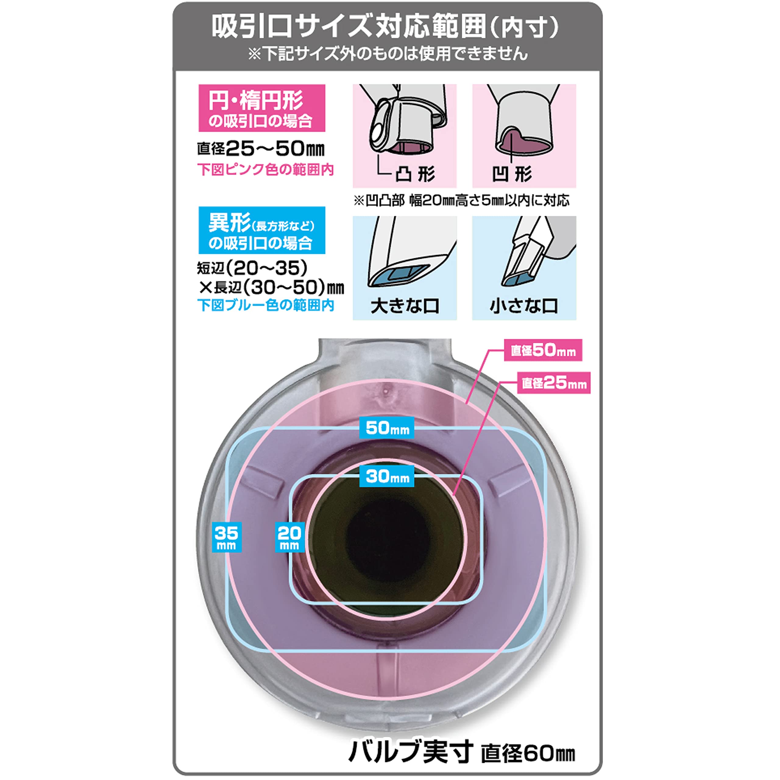 ●くぼみ付きのバルブで凸形吸引口でもあてやすい