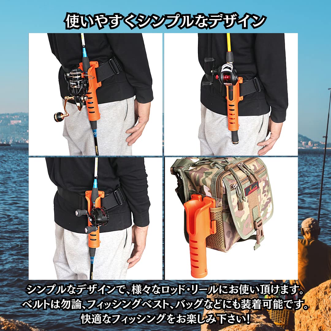 【ベルト装着で便利なロッドホルダー】釣り好きの方には欠かせない、腰ベルト用のロッドホルダーです。激しく動いたりずれたりしても、しっかりとベルトを掴んでくれるので、あらゆる場所で釣りを楽しめます。両手を自由にしたい場合やルアーチェンジ時、ランガンスタイルで動きの多い釣りなどにおすすめ!