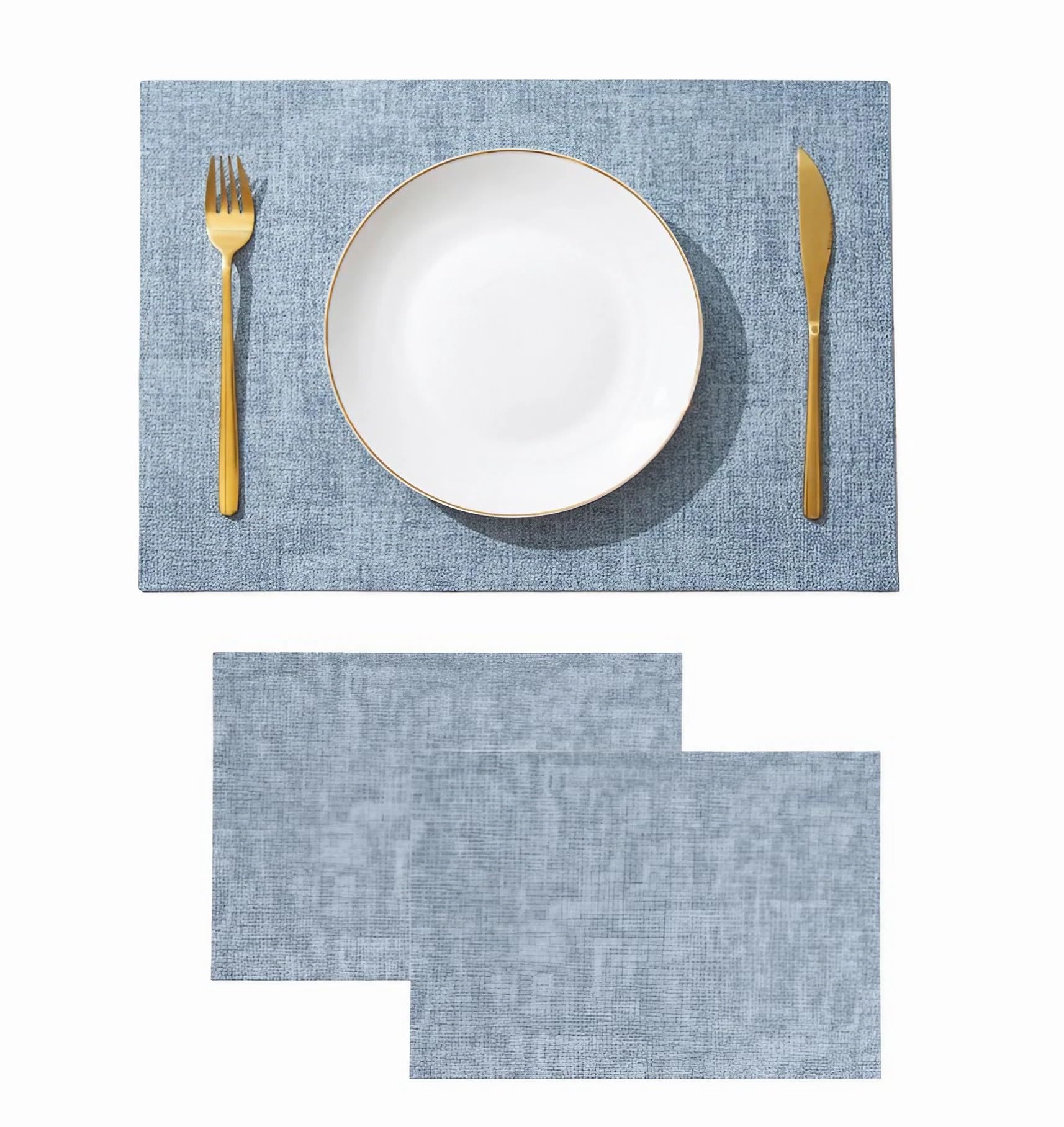 Leeflala(リーフララ) おしゃれで便利なランチョンマット 2枚セット 厚手の丈夫な高質PUレザー 落ち着きのある北欧風デザイン 両面使用 丸洗い 防水 耐油 防熱 汚れに強い 安心安全 (スカイブルー)