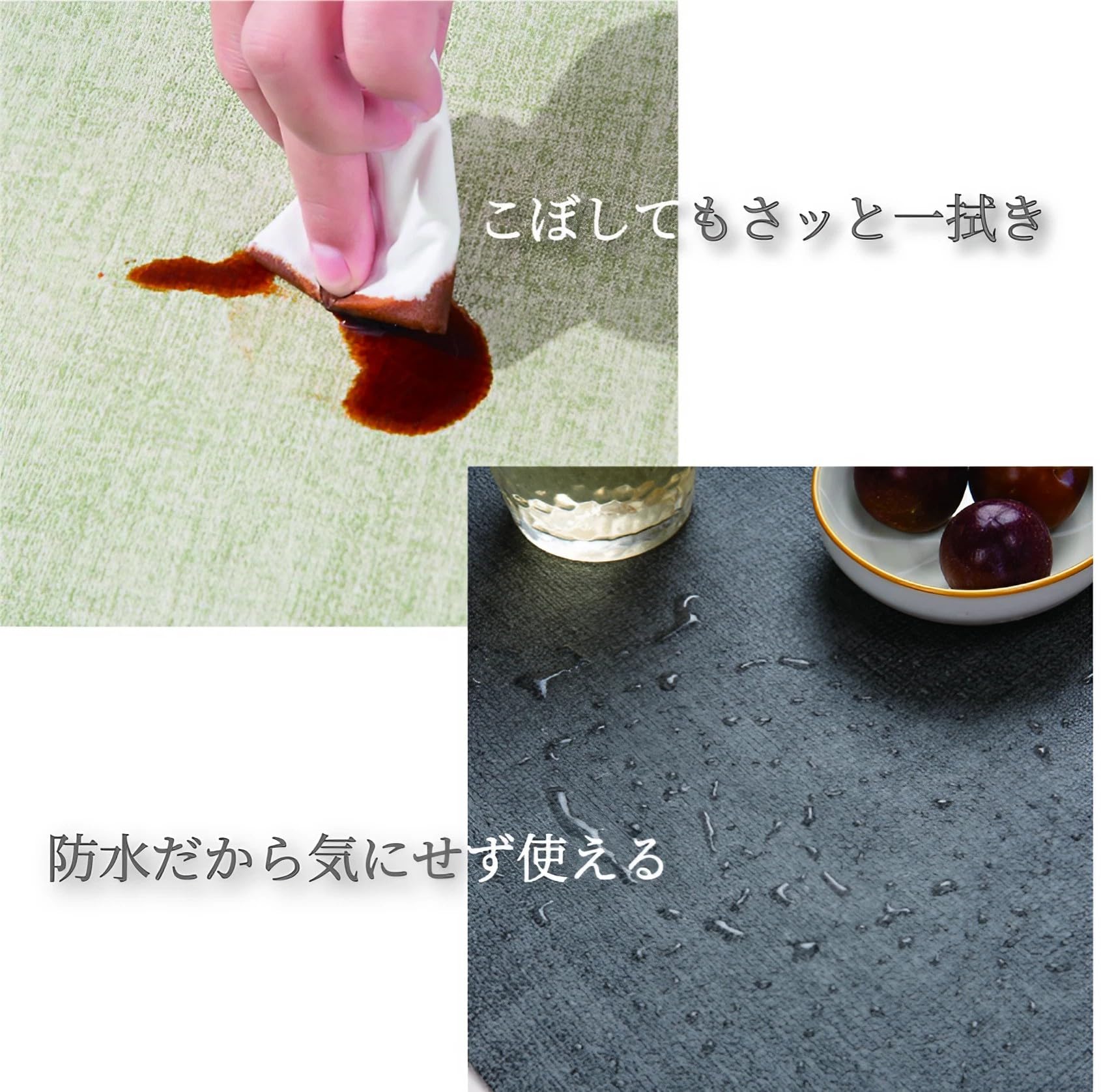 80度までの防熱機能によりテーブルへの負荷を軽減し、大事な家具を保護してくれます。万一熱で変色しても、両面使えますので、傷んだ後はひっくり返してご利用いただけます。(断熱機能ではございませんので高熱の調理器具には使用できません)