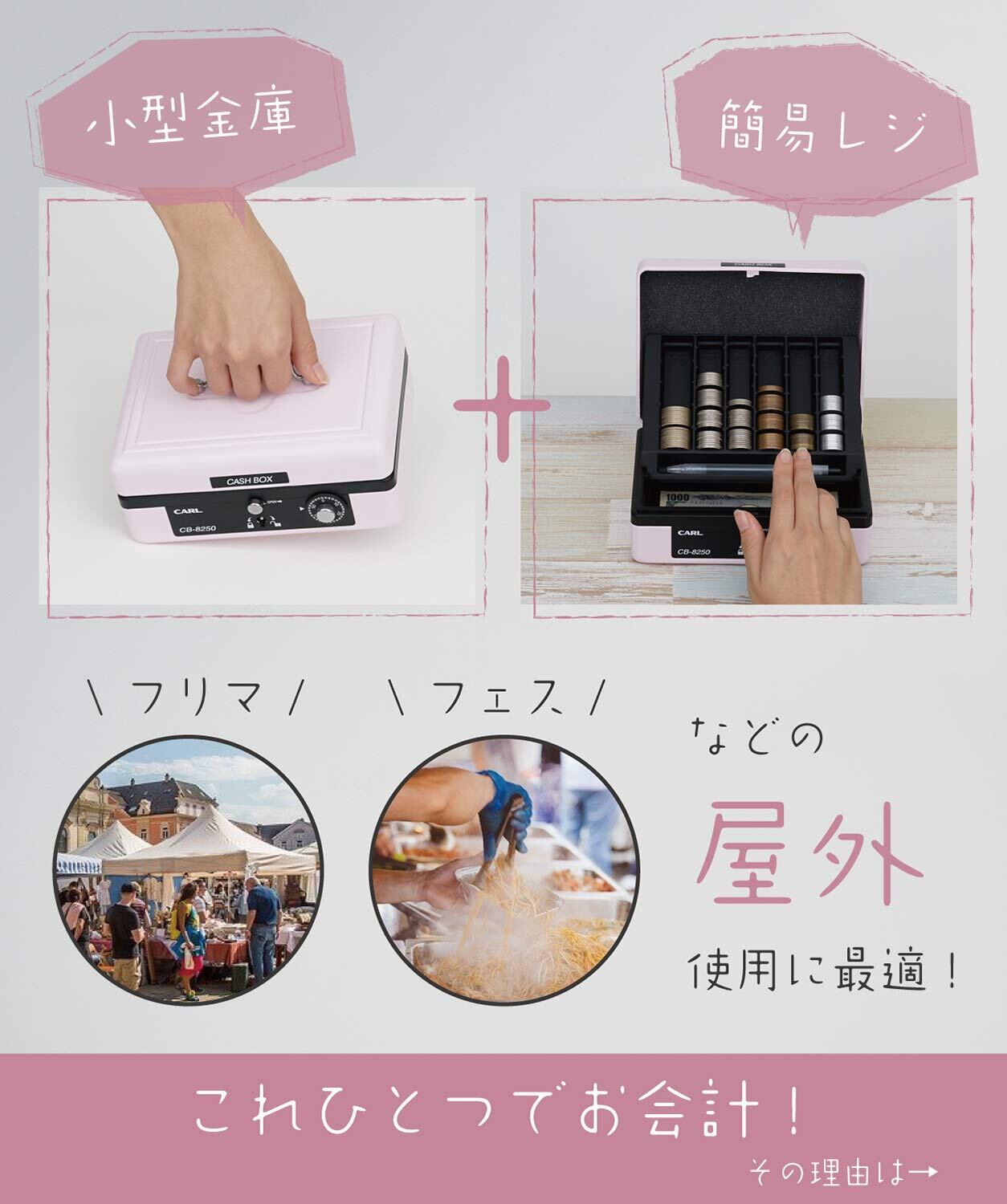 【新着商品】カール事務器(CARL) そとレジ 手提げ金庫 キャッシュボックス A6 ピンク CB-8250-P