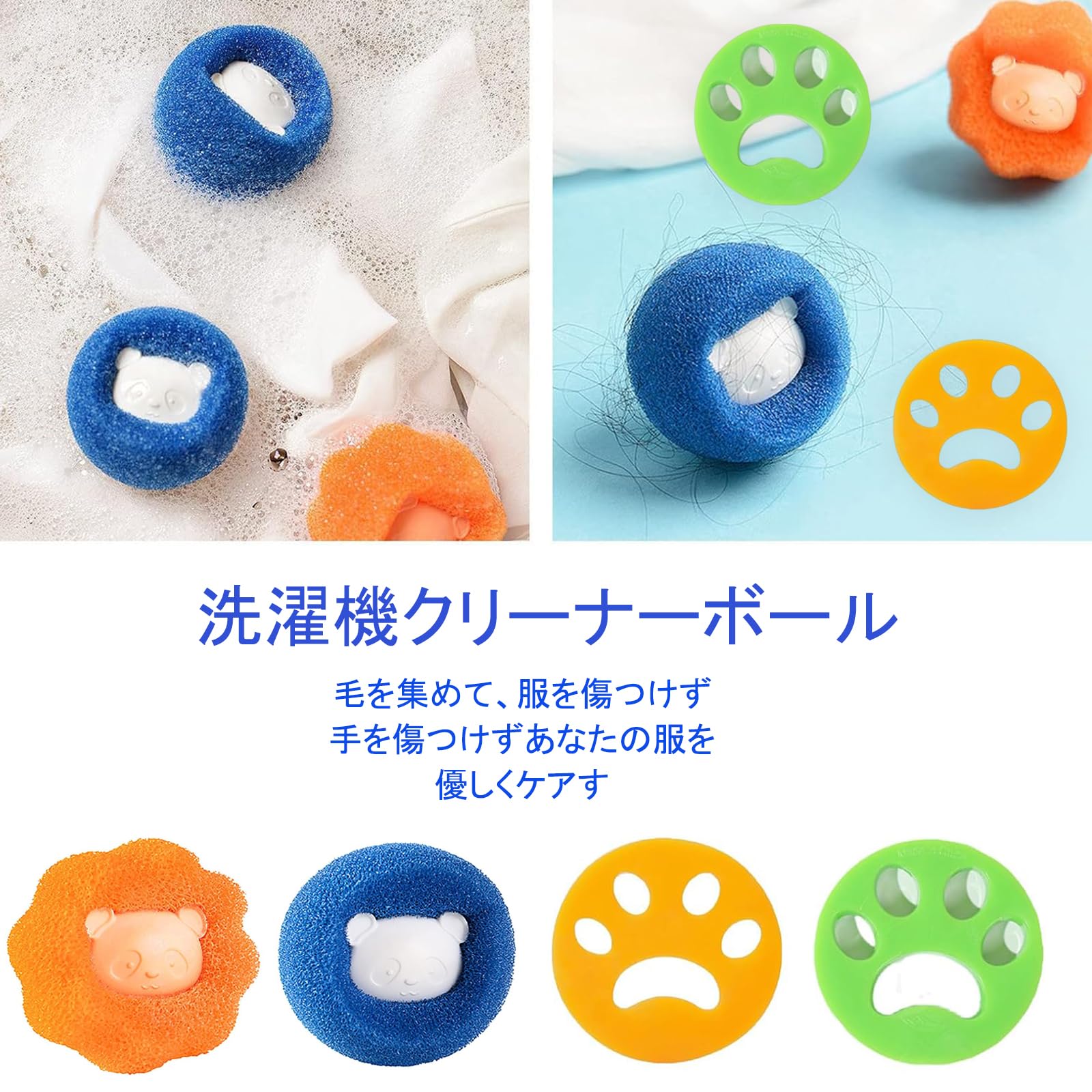 商品説明:数量:8個セット,12 gラウンドオレンジ×2個、12 gラウンドグリーン×2個、ブルー×2個、オレンジ×2個。洗濯機のクリーニングボールは髪の毛や糸くずを集めることができます。 洗濯機に入れて、すぐに使用できます。