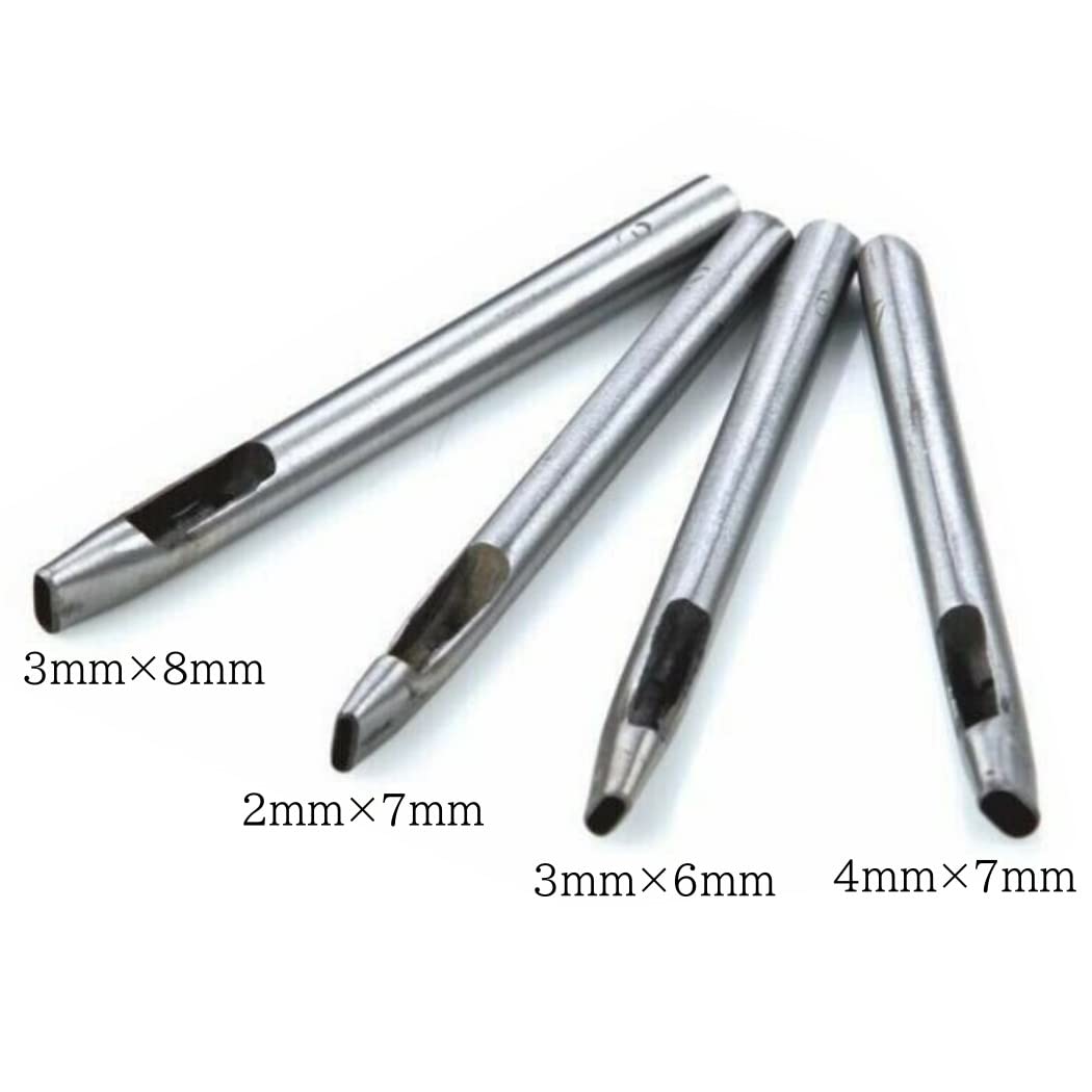 HappyHome 穴あけ 楕円 ポンチ 4本セット レザークラフト 穴あけ道具 打ち抜きポンチ 2mm*7mm 3mm*6mm 3mm*8mm 4mm*7mm